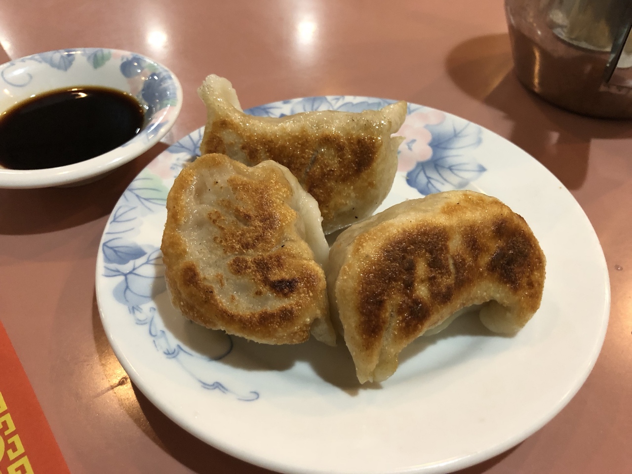 炒飯はパラパラで美味しい。スープは付かない。回鍋肉も肉厚の椎茸キャベツ、ピーマン新鮮な野菜で満足。餃子の皮は厚くあんも固め。
