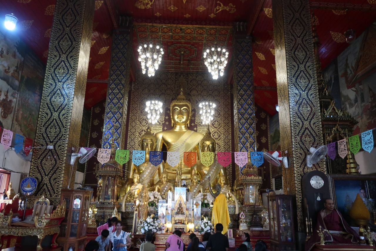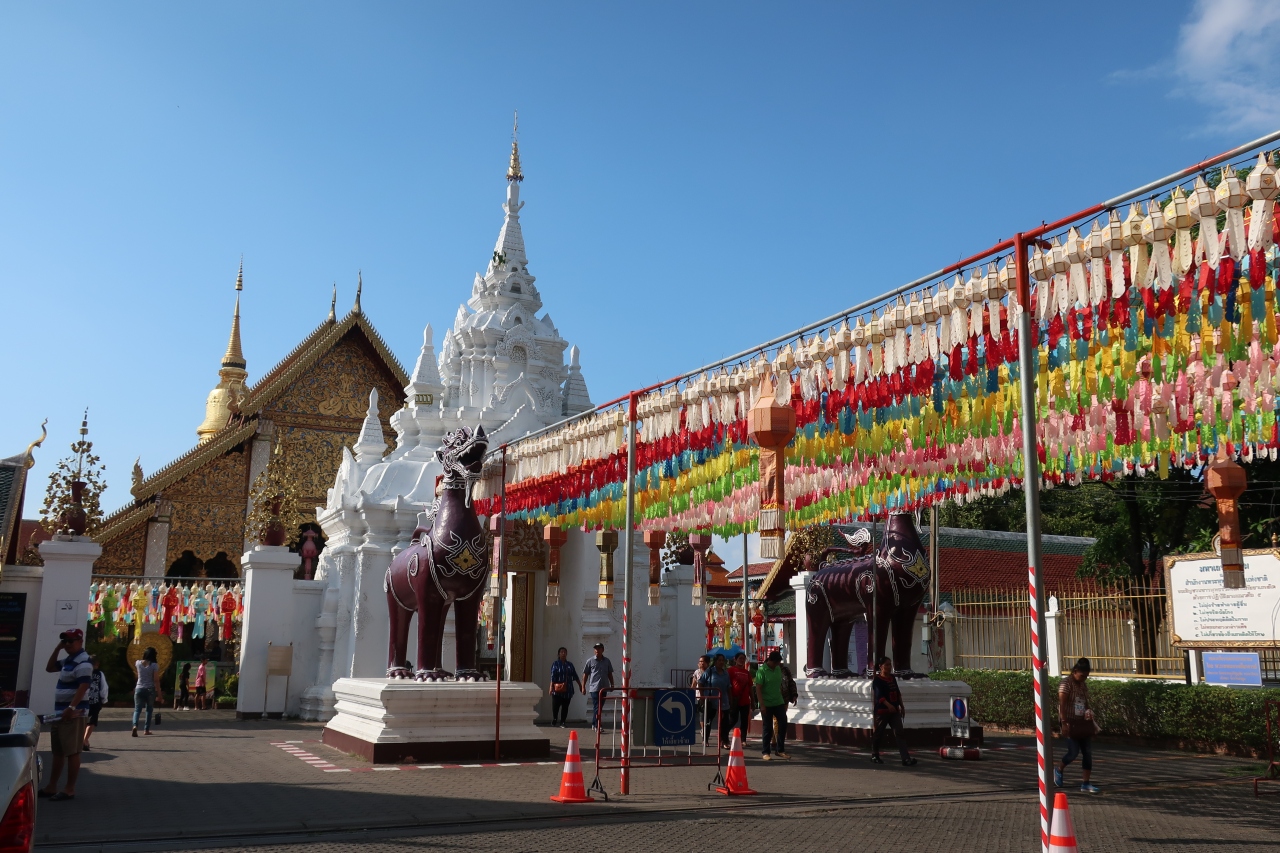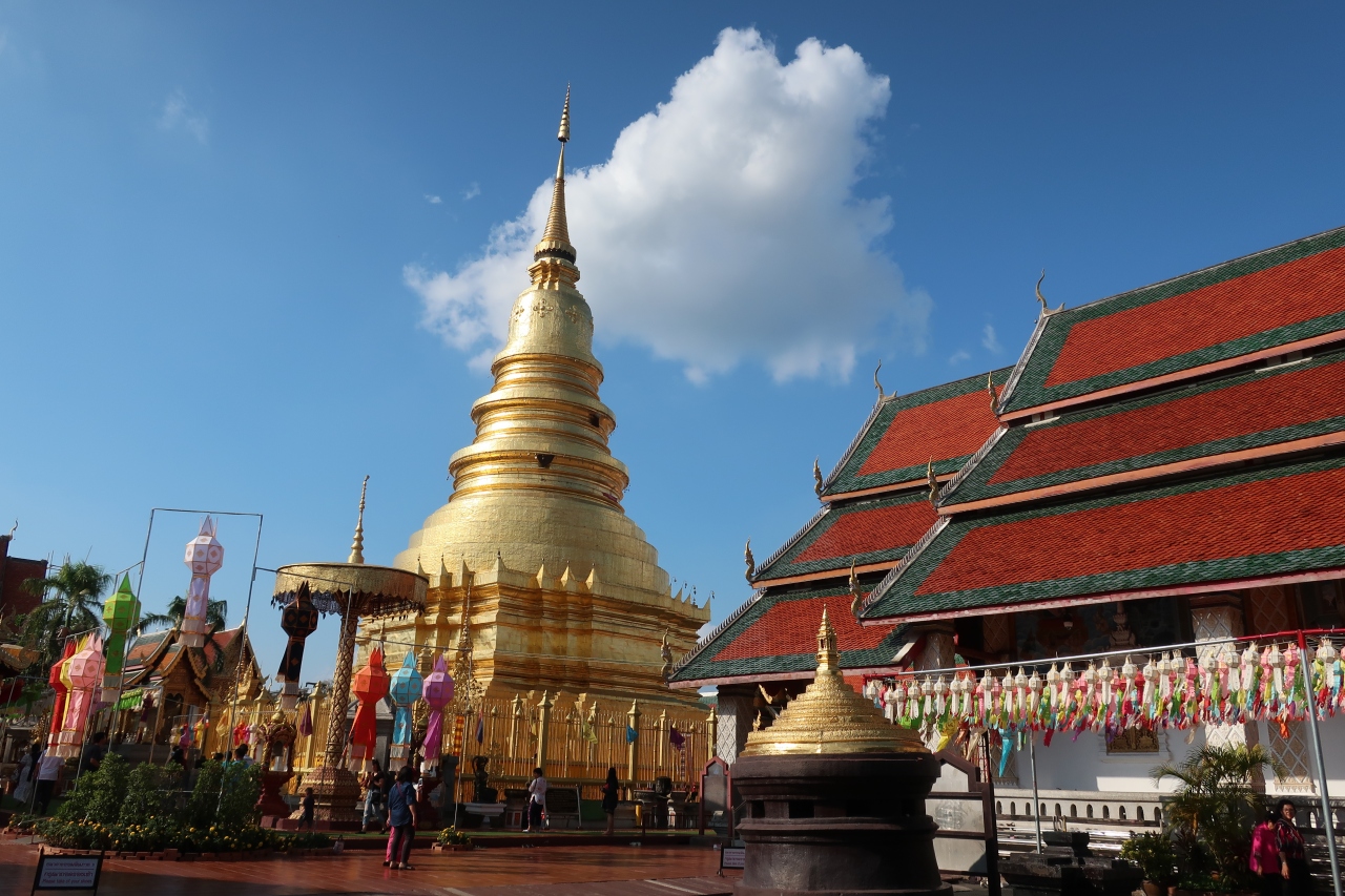仏塔には仏陀の髪の毛が入っているといわれている、ランプーンの名刹です。仏塔の高さは46メートルで、時計回りに3回まわって祈る人の姿が絶えません。仏塔以外にも世界最大(と言われている)銅鑼や、併設された博物館、お寺の向かいのマーケットなど見どころが多く、楽しいところです。