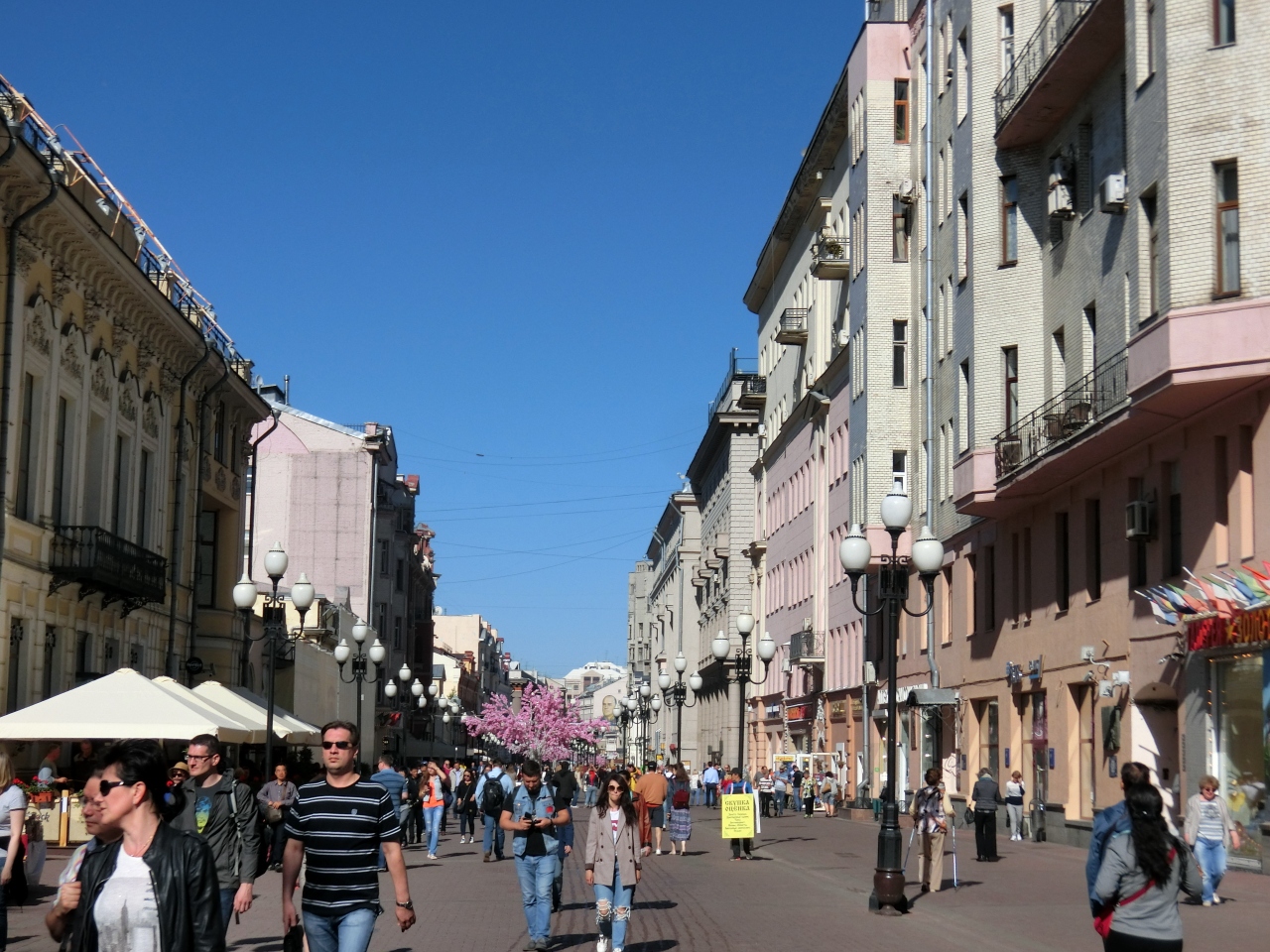 モスクワの繁華街の一つ。通りは歩行者天国になっていて通りの両側には土産物店やレストランなど多くの店があります。スタバもありましたよ。