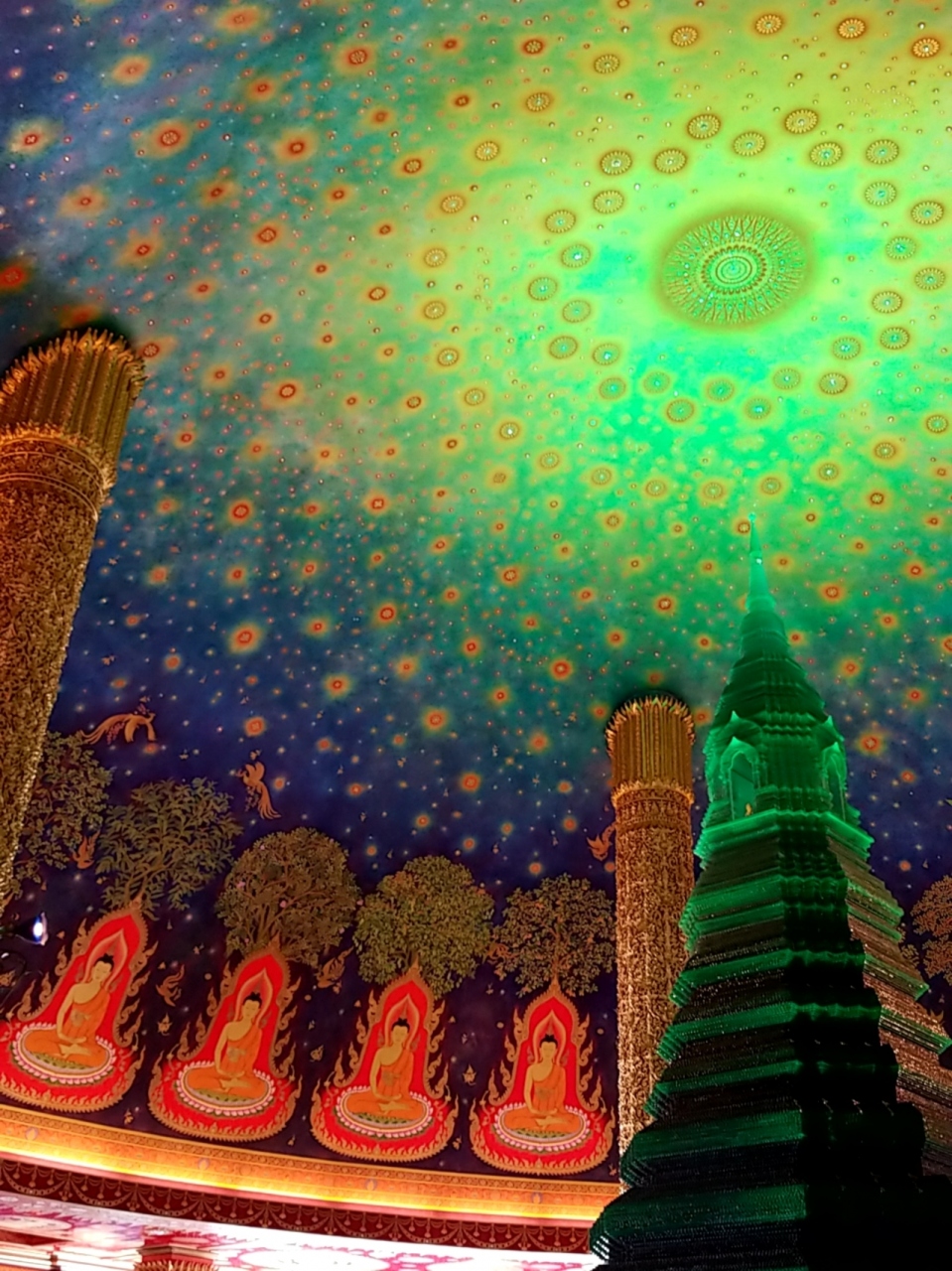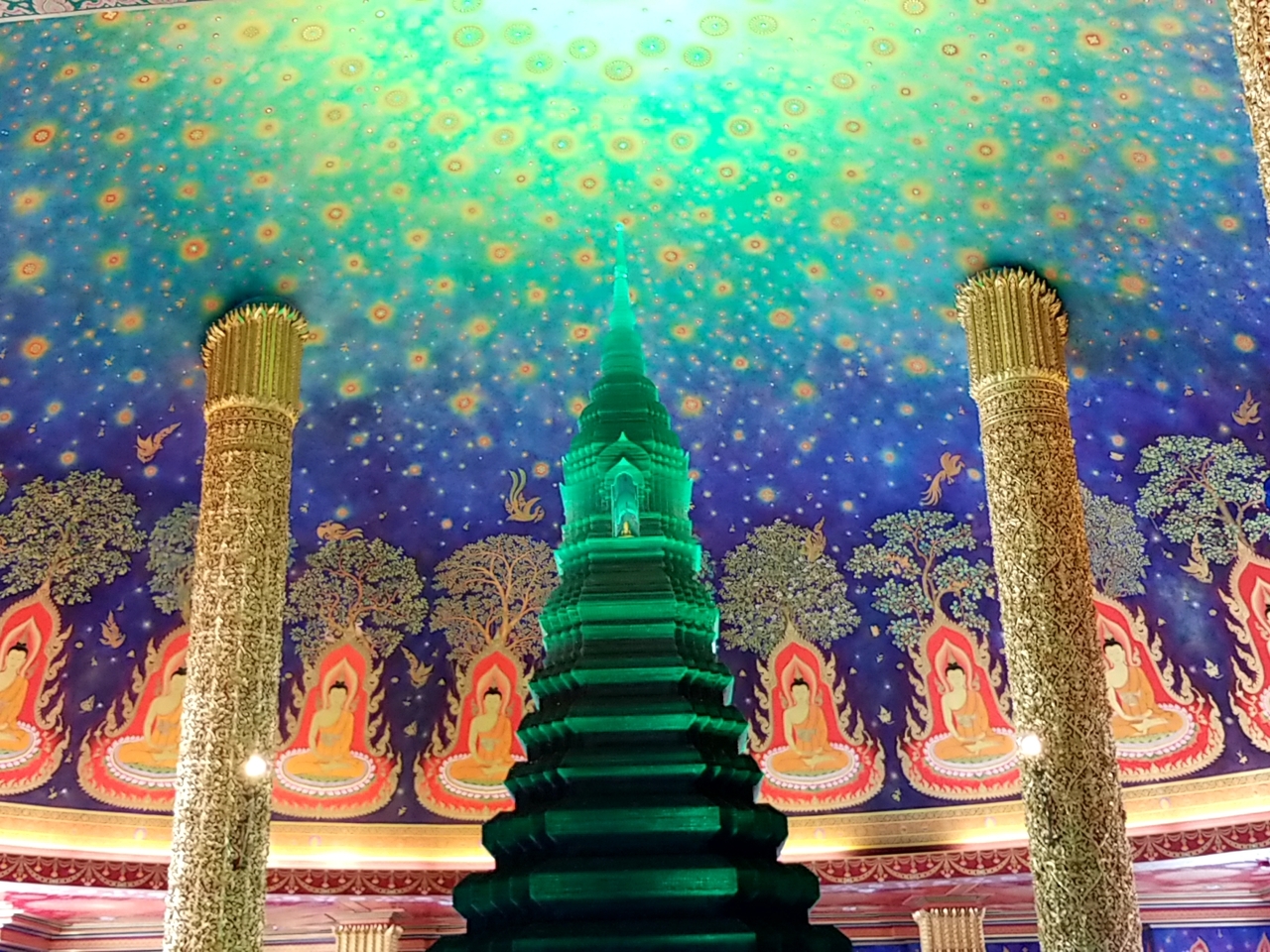 汗を拭き拭き階段を登ると、あのインスタでみた緑の塔と天井が。
