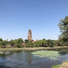 かつて仏教文化が花開いたアユタヤにおいては、その寺院はアンコール式あるいはセイロン式の特徴を持っており、このお寺は前者の形をとっています。グッドの先端が尖っておらずちょうどアスパラガスのような形をしており、堀に巡らされた寺院です。象に乗って観光しました。寺院内は思ったよりも広く、壊された仏像が印象的でした。