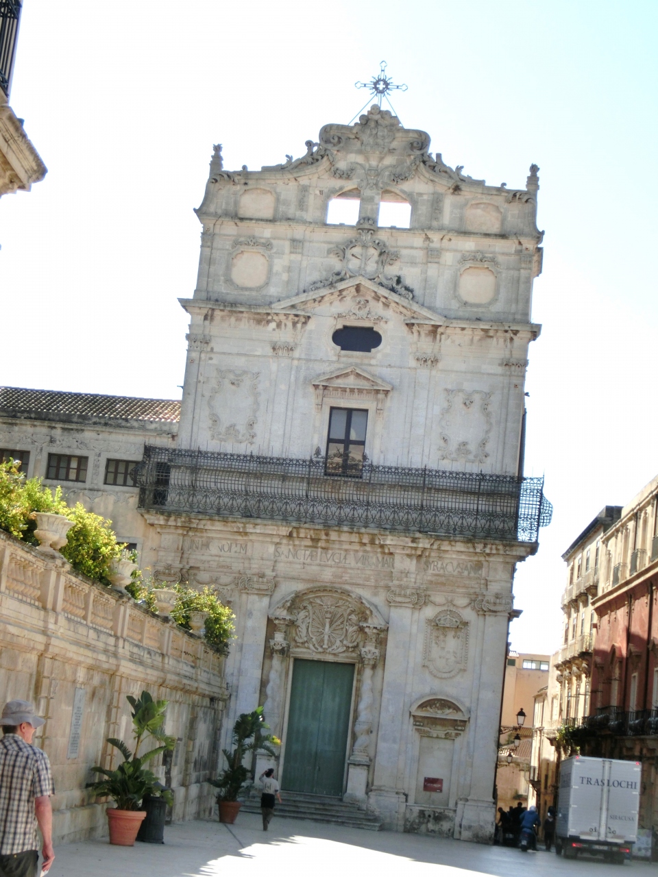 春に見たカラヴァッジョ展がきっかけで急遽実現したシチリアの旅なので、ドゥオモ広場の端にひっそりと建っている聖ルチアに捧げられた小さな教会も見逃せません。ねじれた円柱の間のバロック装飾が施された入口から中に入り、「サンタ・ルチアの埋葬」を鑑賞しました。美しい瞳はくりぬかれていて、剣が突き刺さってできた首の傷口の描写も生々しく、怖い絵でした。