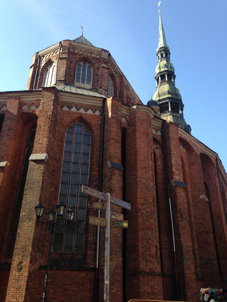 旧市街に入るとはじめの方で観光客が多くいるエリアにある教会です。13世紀にはじめの教会が作られ、現在の建物は18世紀に建てられたものです。有料でエレベーターで上がれる塔があり、リガの旧市街の一望できる展望台があります。