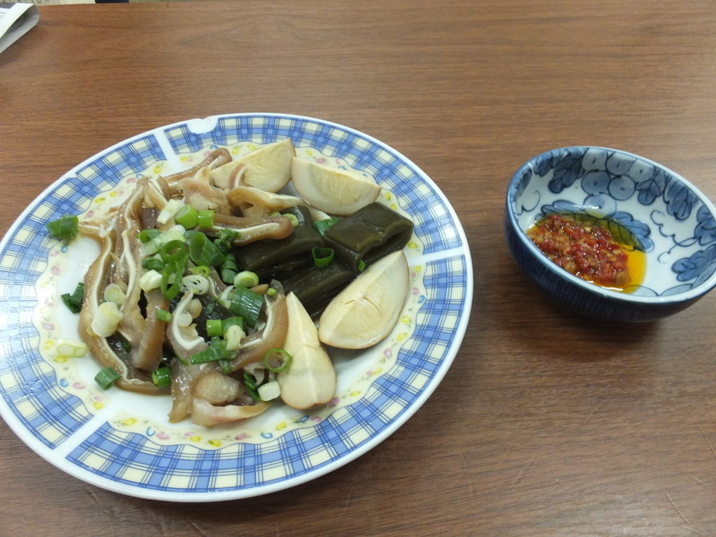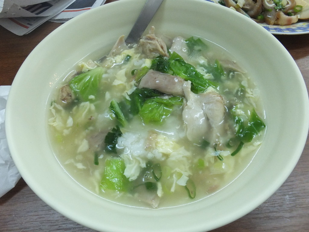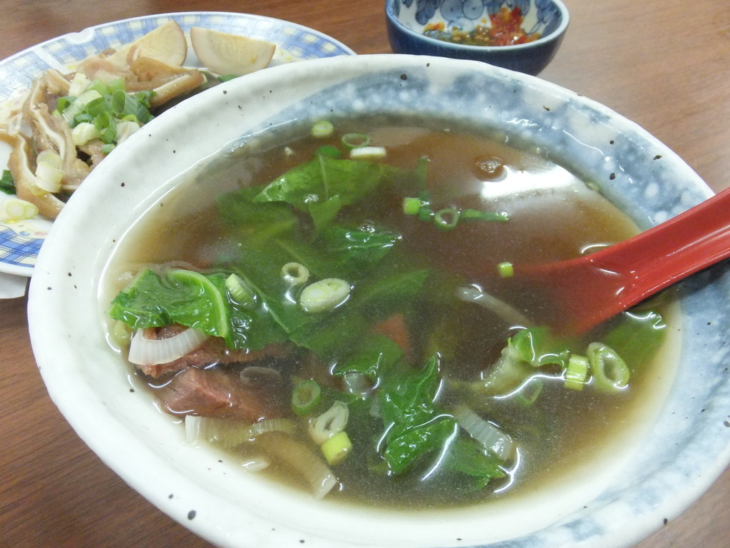 やや小さめの、小ざっぱりしたお店で、ご婦人が一人やられていました。蔥燒雞汁(煮込みチキン汁)、牛肉湯、茹で卵・昆布・豚の耳、空心菜、水餃子を注文しました。どれもさっぱりしていて美味しかったです。