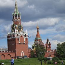 トロイツカヤ塔への橋の登り口からクレムリンに入場しました。橋の下から人がいっぱいで並び方もグチャグチャで個人の入口なのか団体の入口なのかすら判別できませんでした。いくつかあるゲートも開いているものやら閉まっているものやら、わけがわかりません。ただただ流れに流され、時間がかかるのを我慢してやっとゲートを通過することが出来ました。塔につながる橋から見たトロイツカヤ塔はとても精悍に思えました。