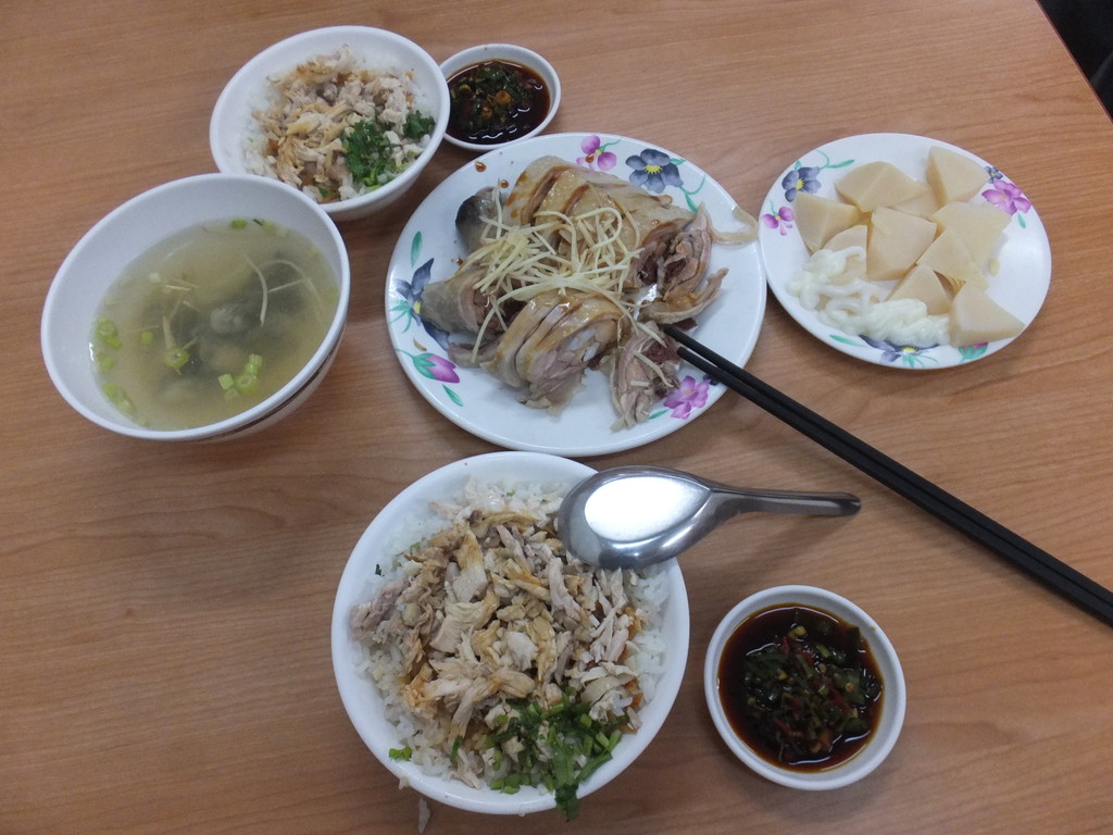 妻と王義雞肉飯へ行きました。私は大、妻は小の雞肉飯を注文、雞肉飯はあっさりしていて美味しいです。鶏肉、牡蠣スープ、茹で筍も頼みました。鶏肉は、唐辛子入りの醤油を付けて食べると美味しです。