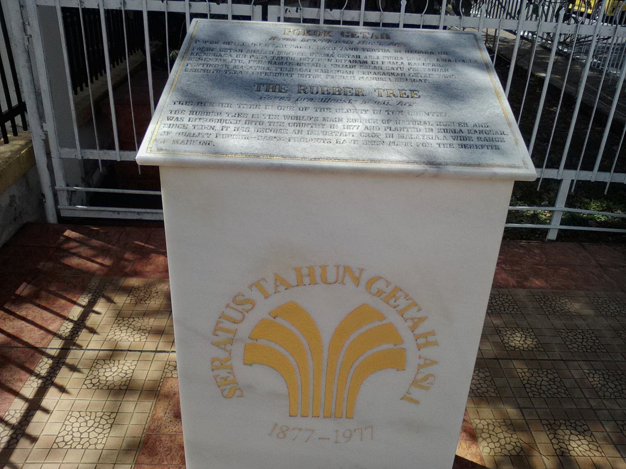 このゴムの木の周辺には街路樹になっている巨木がずらり。これらをゴムの木だと勘違いし、いや〜古いだけあってさすがにデカいなぁと驚きながら眺めていたのですが実は違いました。ゴムの木は交差点近くにある1本のみです。巨木で驚いてしまっていたので意外とフツーなサイズに拍子抜け。絵的にもそれほどインパクトはありません。しかしこの木はすごいんです。1877年にマレーシアにゴムのプランテーションが作られた時の生き残りでマレーシアでは最古のゴムの木の一つのようです。ゴムの木としてはデカいのかなぁ、やっぱりちょっとフツーかなぁ…。