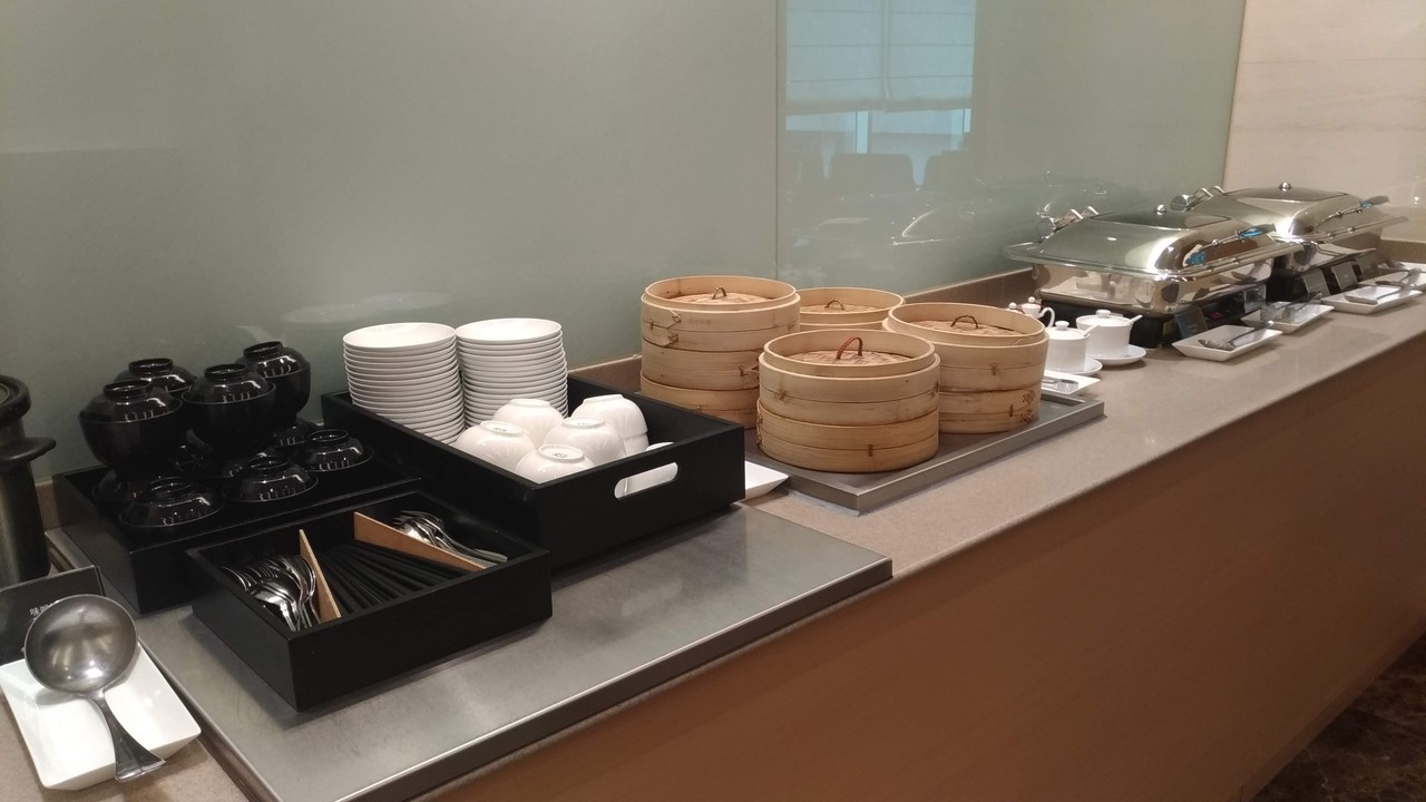 ターミナル2のDエリアにある日本航空専用のラウンジ。ワンワールド系のラウンジは、ターミナル2には他にないので、日本航空利用の場合はこのラウンジに限定されました。点心などのホットミールとフルーツ、アルコール類と一通り揃っていますが、他のサクララウンジと比べると、少し寂しい印象です。