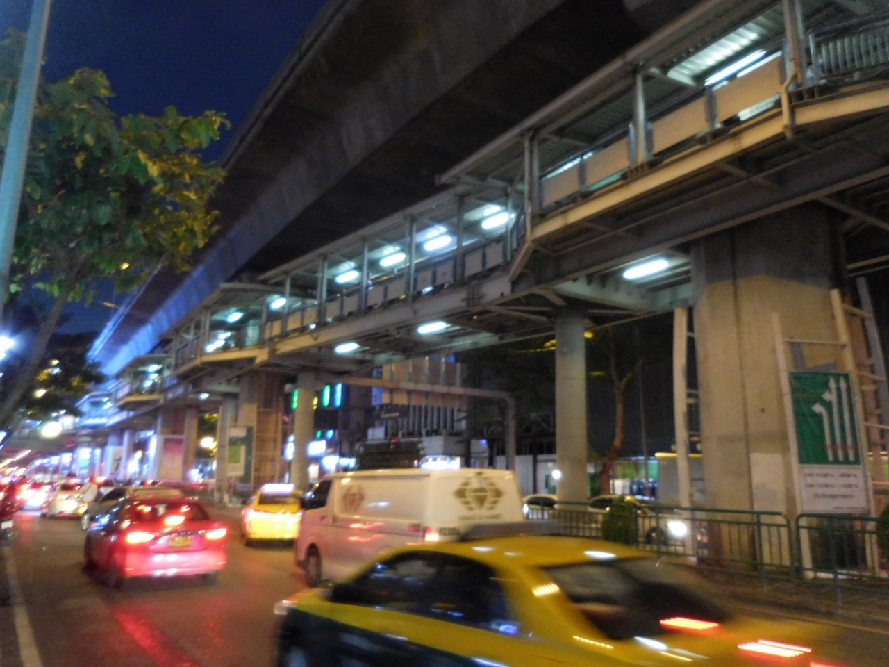 駅を出るとラーマ1世通りの上を歩行者用のスカイウォークが通っています。夜に訪れると大変にぎやかなエリアで楽しめます。