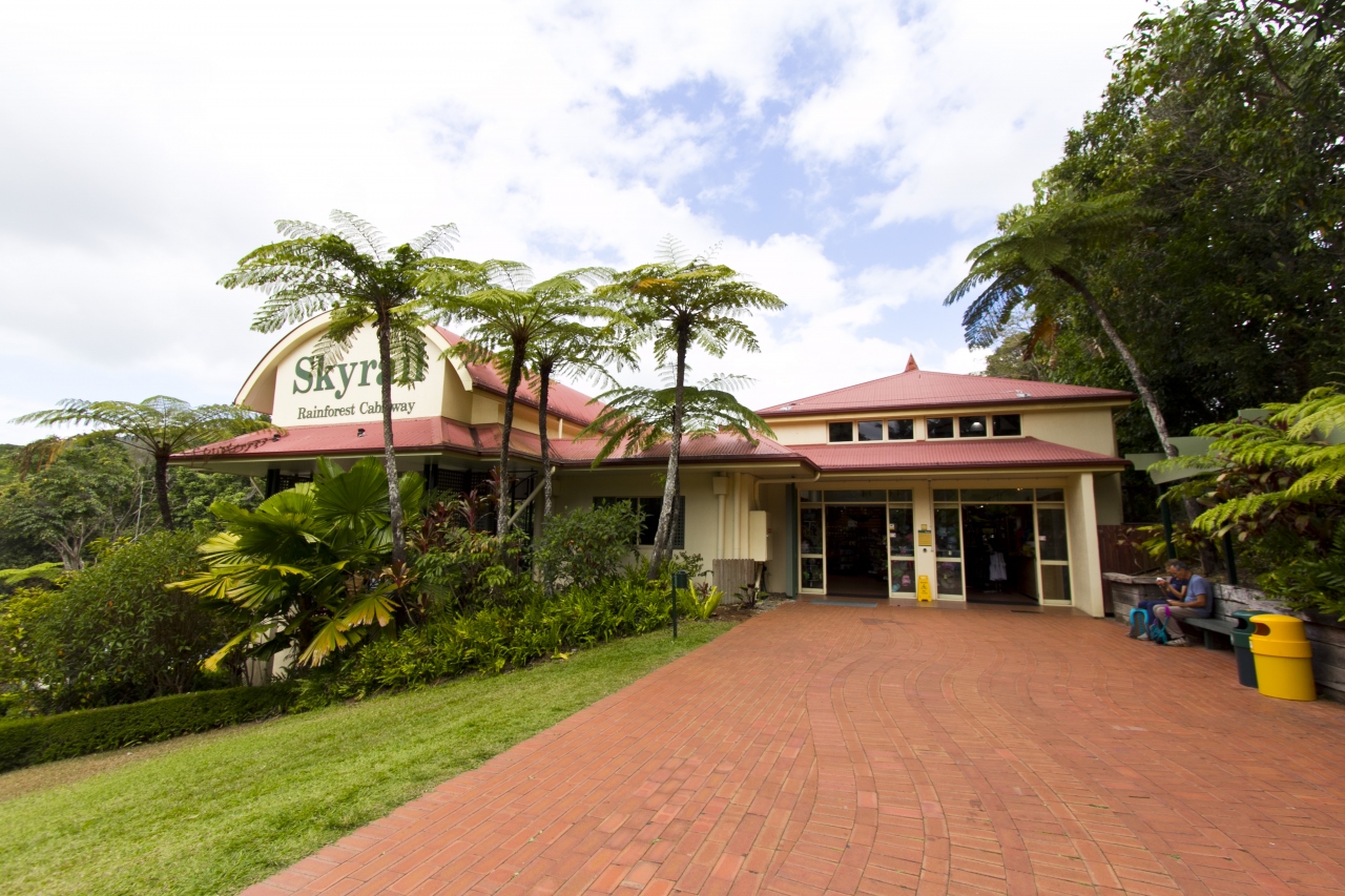 スカイレールはキュランダ高原の麓スミスフィールドとキュランダ高原を結ぶ、約7.5kmの長距離ロープウェイ。