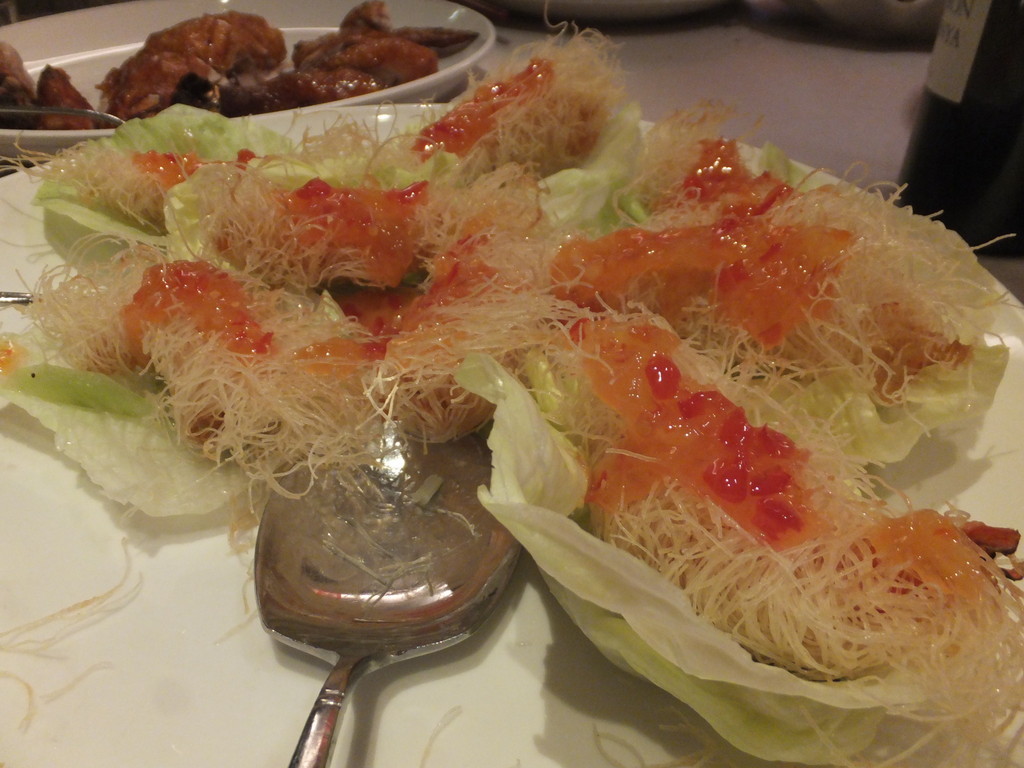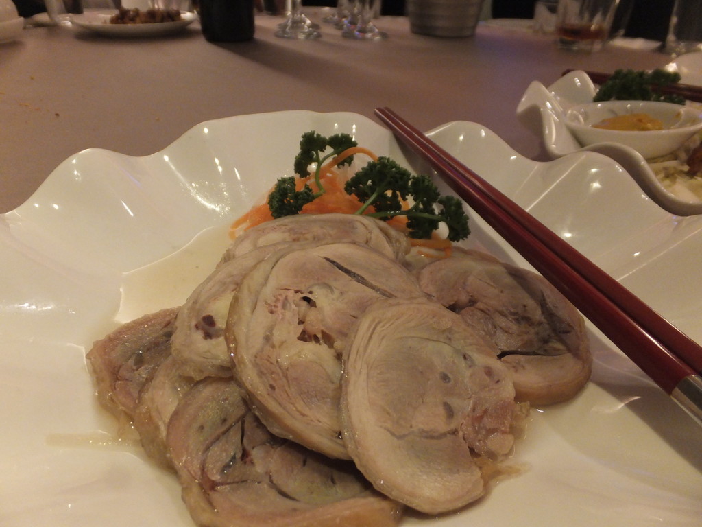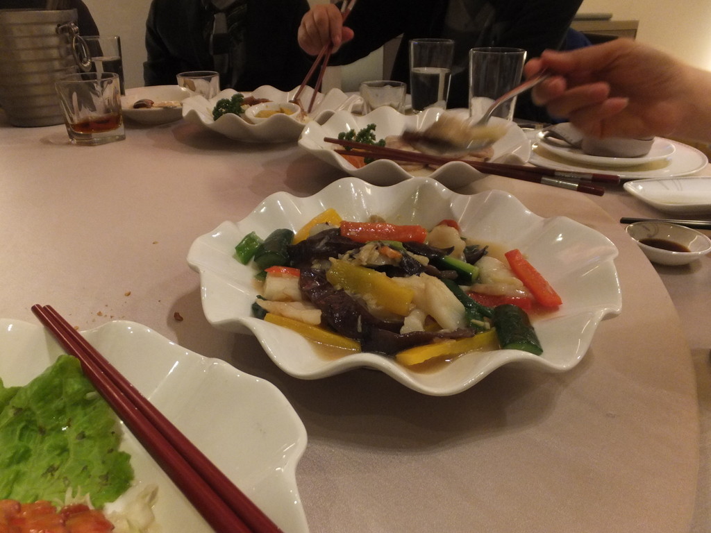料理は肉料理など10品、お粥、スープ、デザートなど凄くおいしかったから、一卓(5,6人)10,000元でしょうね。