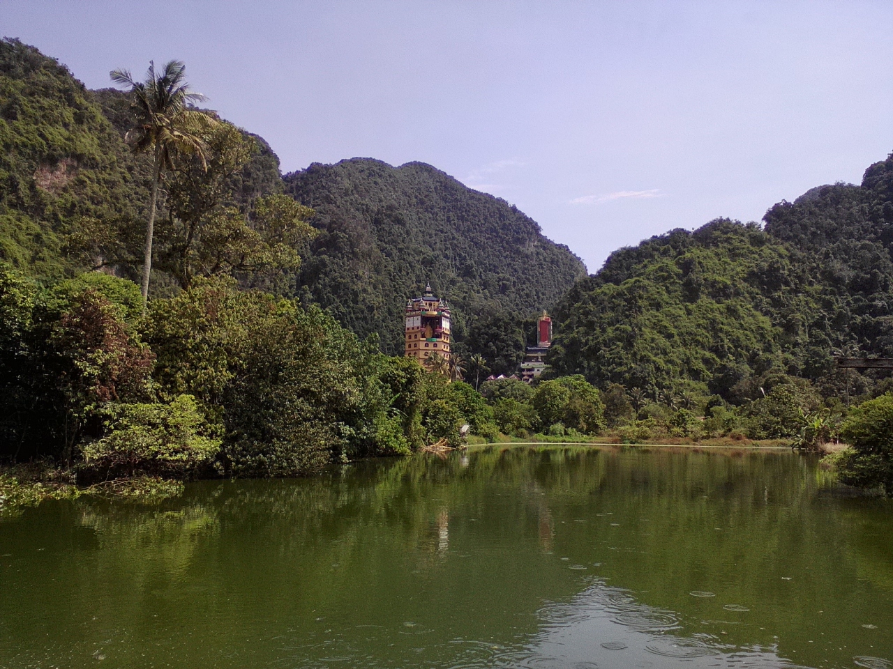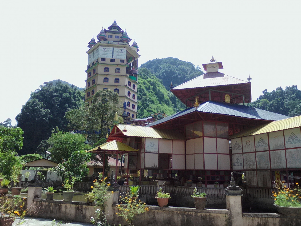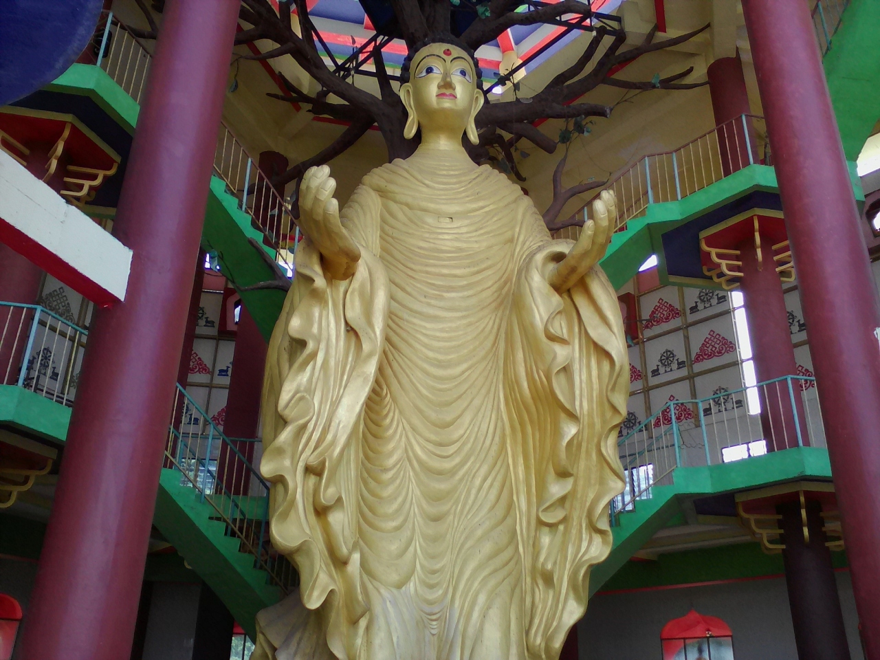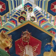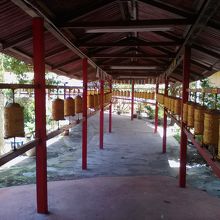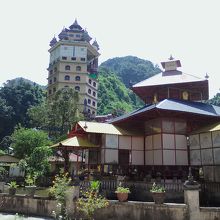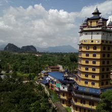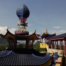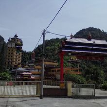 まるで塔のようなチベット仏教寺院です。離れた所からでも見通せ圧巻の姿。人気がなくひっそりとしていましたが勝手におじゃまさせてもらいました。塔の真下までいくと階段があり矢印が書かれていたのでその通り登りました。内部は部屋などはなくがらんどうです。あとは頑張って上まで登るのみ。最上部には愛らしい仏像が…なんか違う…。けど眺めはいいです。チベット仏教らしさと言えば“ブッダアイ”とマニ車、タルチョくらいです。本場のものとはやや趣きが違います。マレーシア風かな?