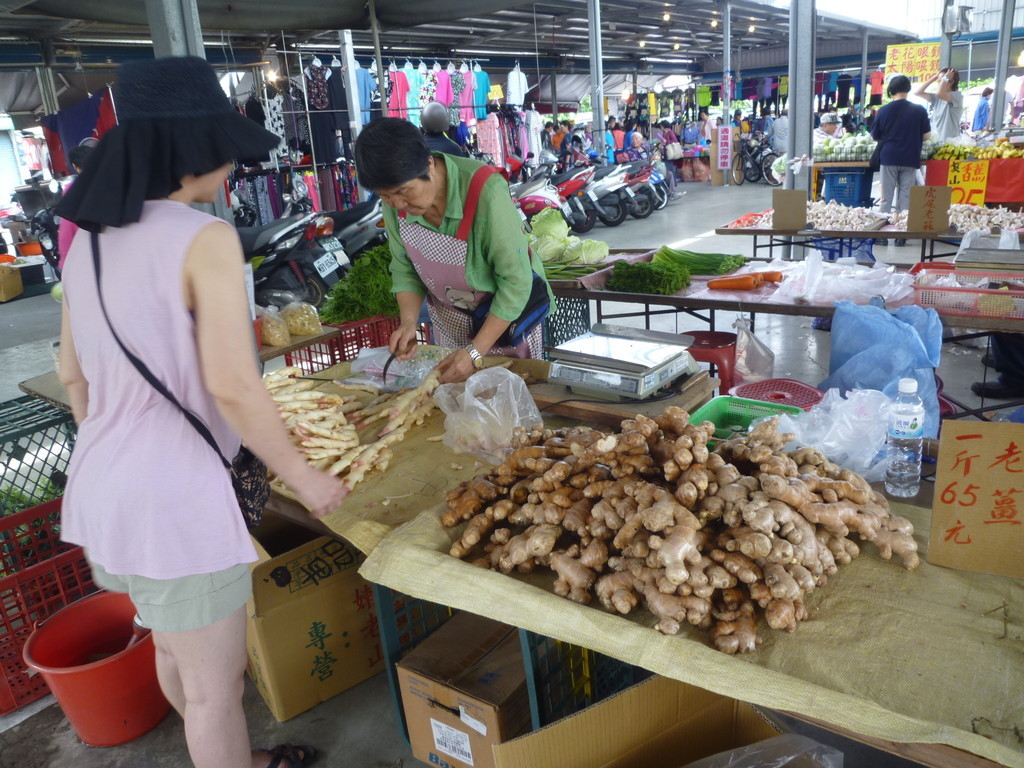 ライチ、新生姜、魚を買いました。新生姜は若い生姜だけを切って貰いました。