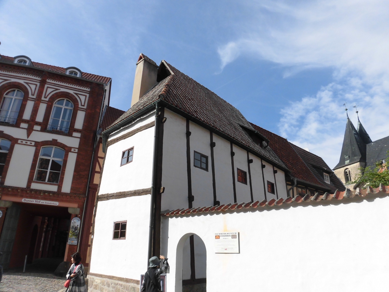 クヴェトリンブルグには、数多くの木組みの家があります。 その中で、この家は他と違う造りで、「シュテンダーバウ」という建築様式の家で、中は博物館になっています。 ドイツで最も古い建築様式で、1310年に建てられ1965年頃まで住居として使われていたそうです。