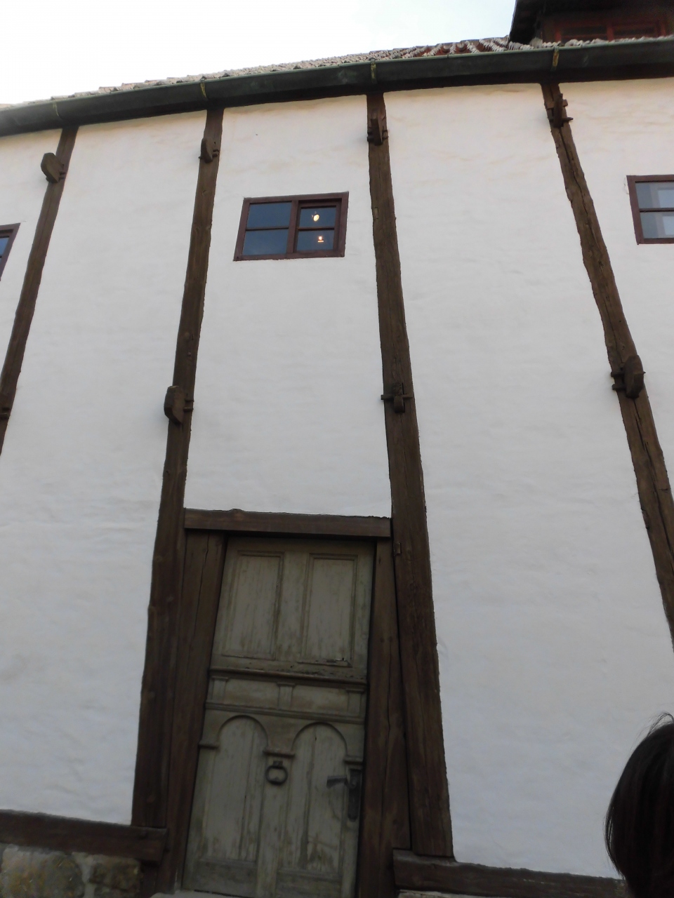 各柱が土台から屋根まで通され、天井の梁をこれに差し込まれて全体を支えているそうです。 日本の木造建築に通ずるところがありますね。