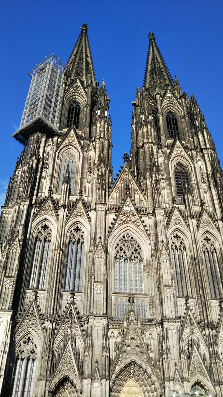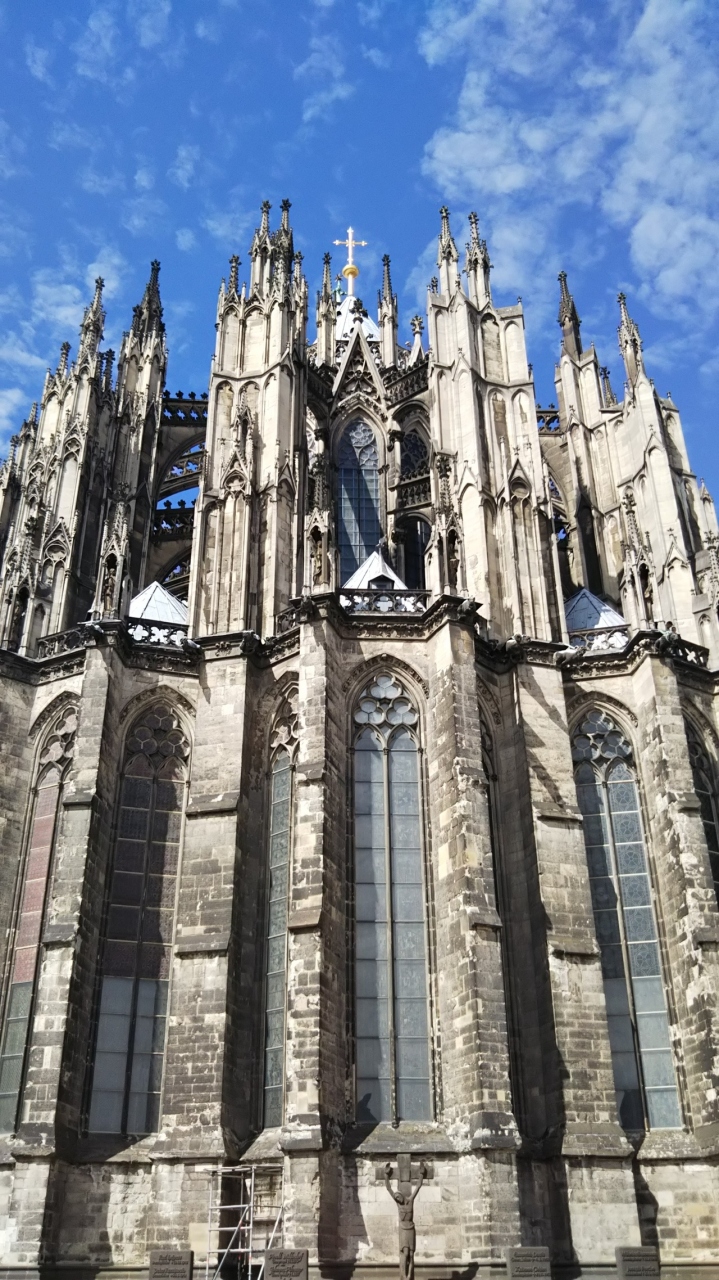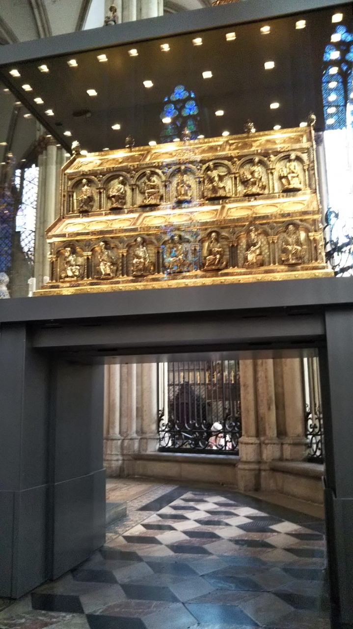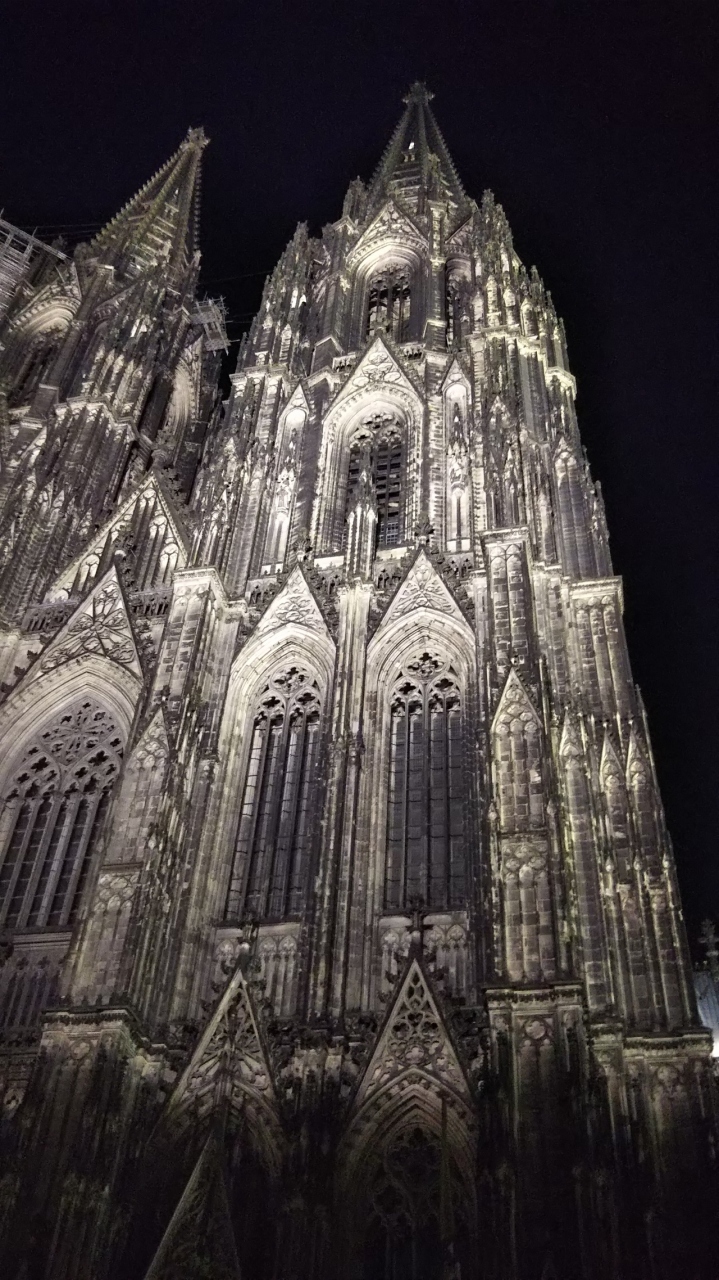 ケルン駅を出ると目の前にそそり建っていて、その大きさに2度びっくり。大聖堂の中は天井が高くて、荘厳な雰囲気。東方三博士の聖遺物が入っている黄金の聖棺もありました。日中は凄い人でしたが、夜のライトアップ時は、人は疎らでした。真裏から見る大聖堂は正面とは全く違う雰囲気でしたし、橋を渡って対岸から見る大聖堂も良かったです。