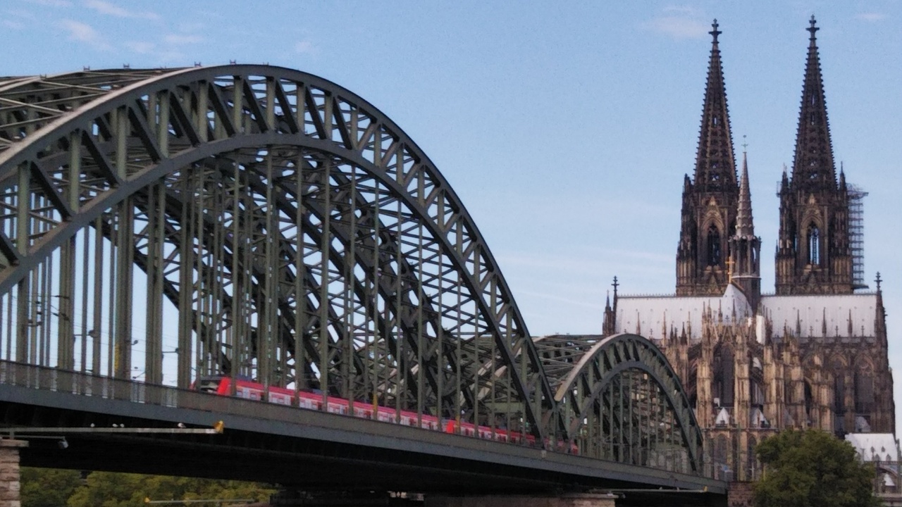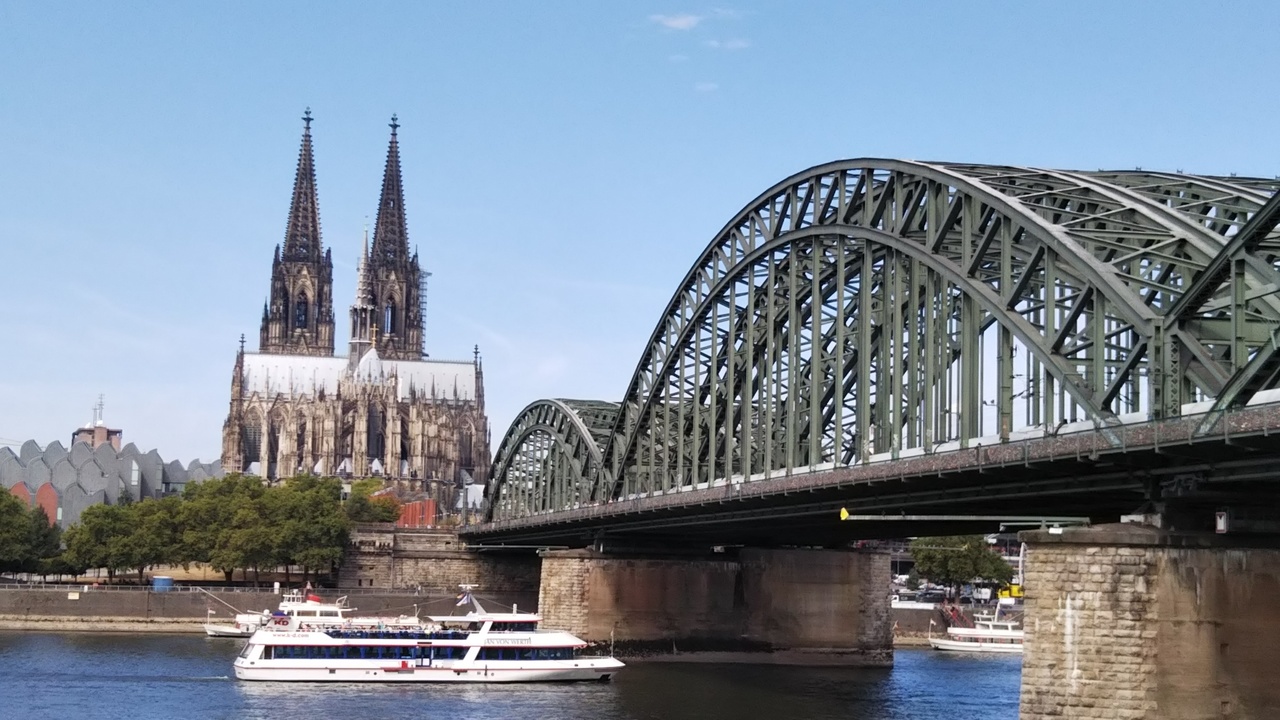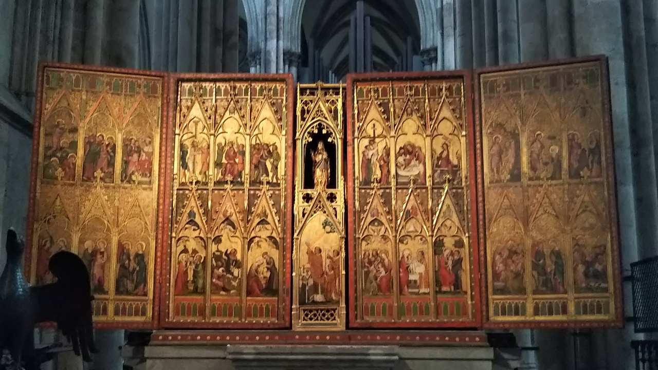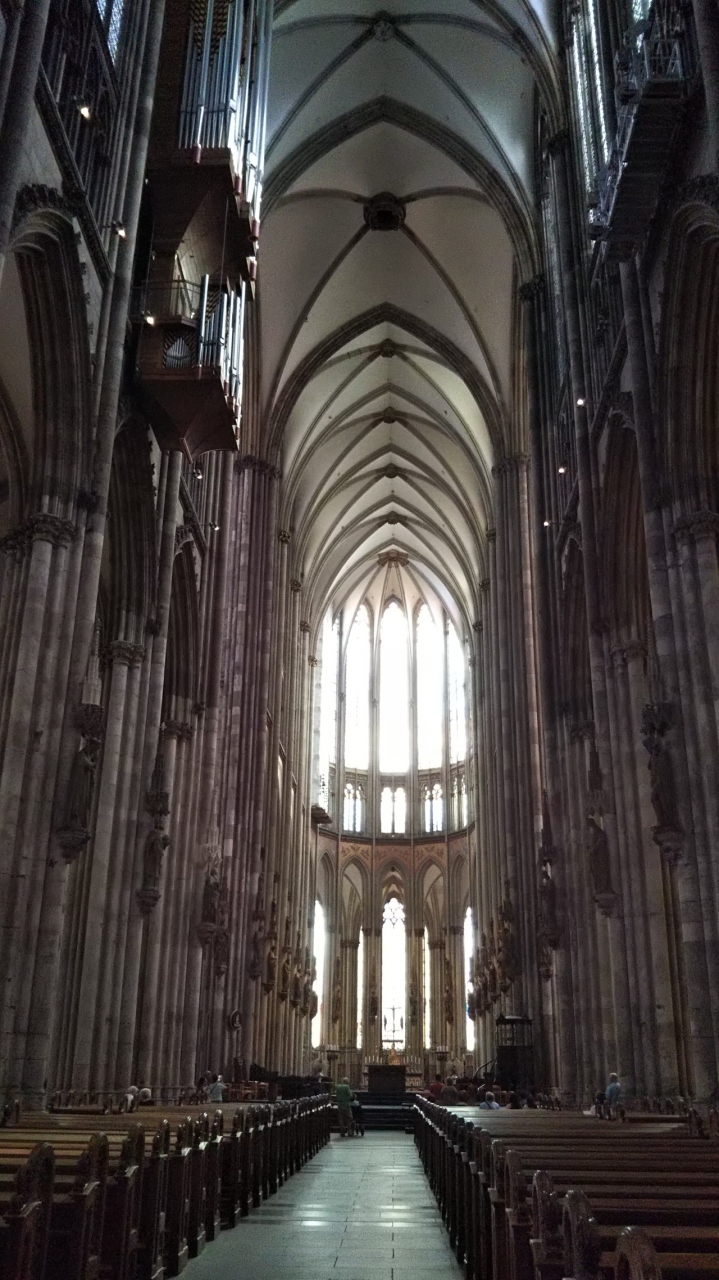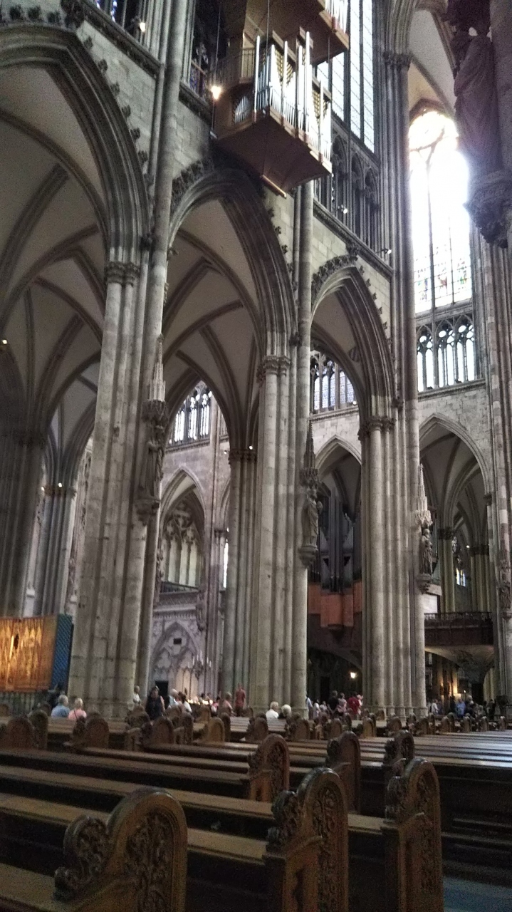 ケルン駅を出ると目の前にそそり建っていて、その大きさに2度びっくり。大聖堂の中は天井が高くて、荘厳な雰囲気。東方三博士の聖遺物が入っている黄金の聖棺もありました。日中は凄い人でしたが、夜のライトアップ時は、人は疎らでした。真裏から見る大聖堂は正面とは全く違う雰囲気でしたし、橋を渡って対岸から見る大聖堂も良かったです。