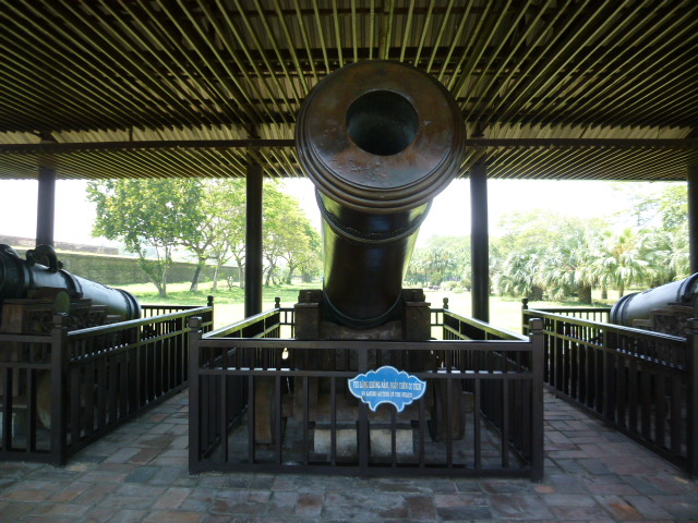 王宮の體仁門をくぐると神聖な大砲は王宮の側にある国旗掲揚台の二か所に分け置かれています。王宮に向かって右側には四季を表す4つの大砲、左側は中国の五行思想を表す5つの大砲が屋根付きの中に置かれています。以前、北京軍事博物館で見た大砲と同様に迫力ありました。この大砲で王朝を守ったのですね、迫力ありますよーご覧なってくださいね。