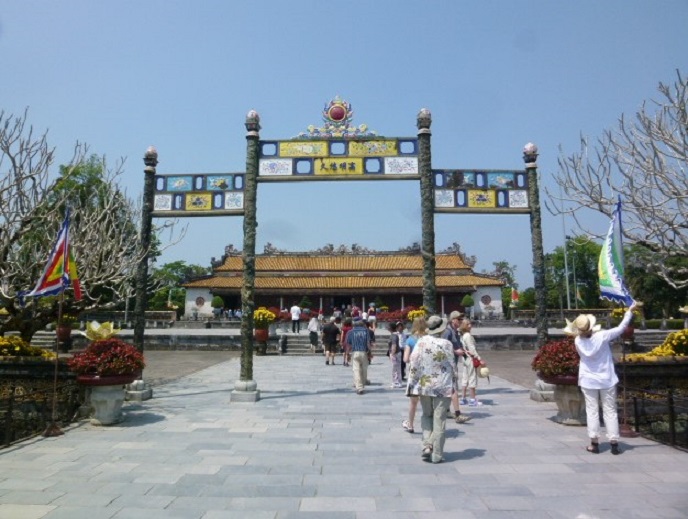 ベトナム最後王朝がおかれた阮(グエン)王朝の王宮門(午門)をくぐり鯉を鑑賞しその正面に聳え建つこの「太和殿」は皇帝の即位式や政務が行われていた場所です。広間には皇帝が座る金箔が施された王座が置かれていますが撮影は禁止になっています。左右対称一対された建物は紫禁城に比べ規模も小さく地味な造りに感じたのは私だけでしょうか。