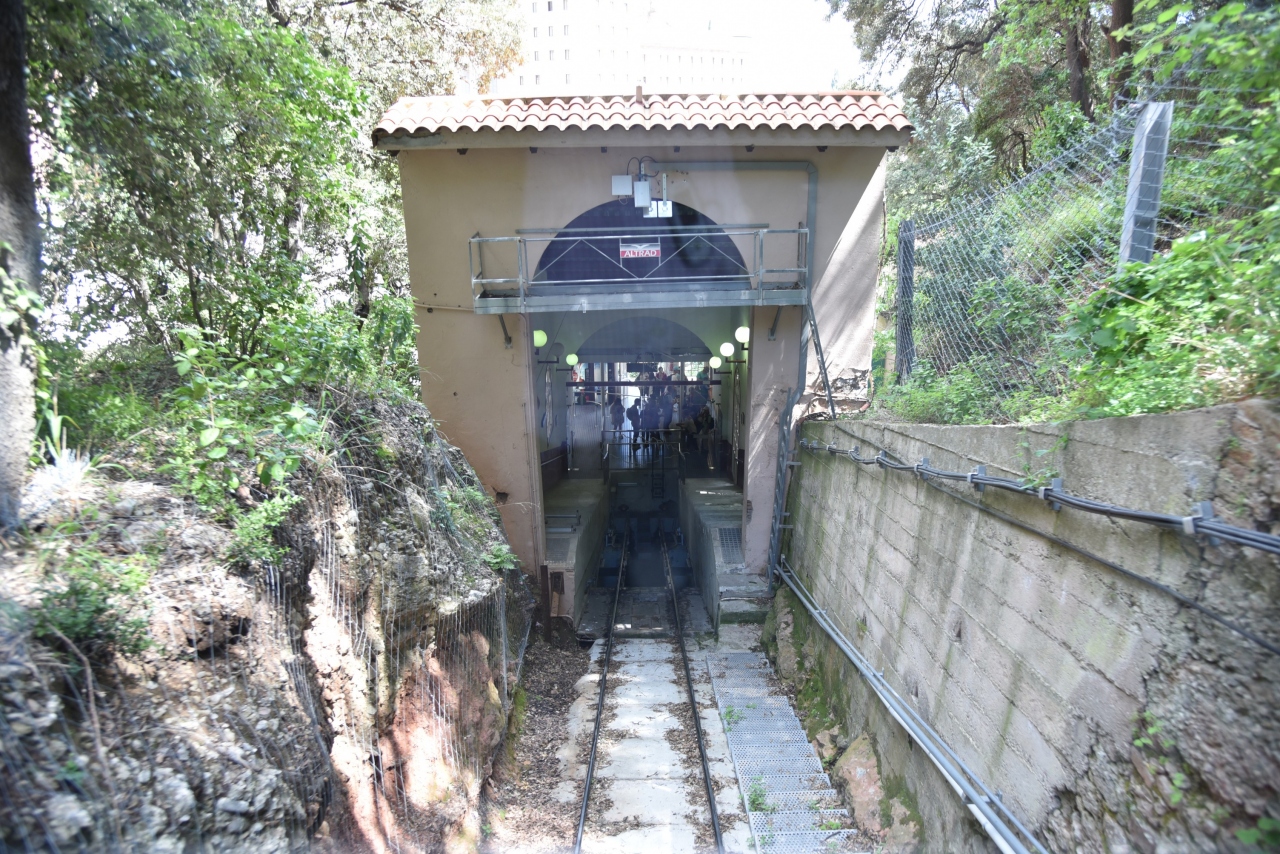 モンセラ-ト登山鉄道駅終点に着いたあと横にあるフニクラ駅へ行きサンジュアン駅で降りました。フニクラ車窓から見るモンセラ-ト山と修道院は絵になります。