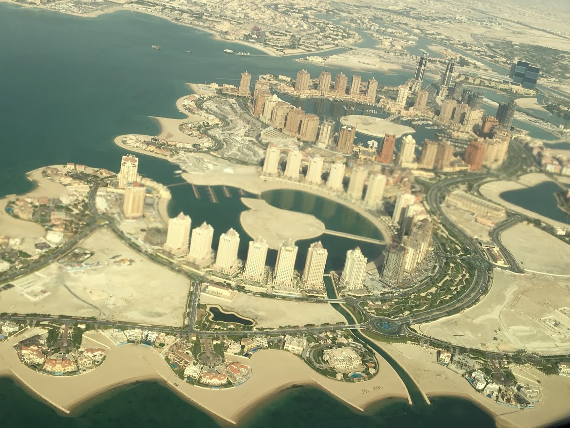 中東の空港で上空からの景色が素晴らしい