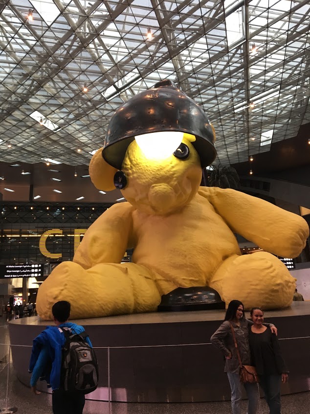 中東の空港なの新しく綺麗です。空港のターミナルの中心にあるランプベアは大変大きくて