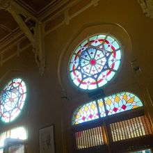 天井が高く、ステンドグラスから差し込む光がとても綺麗です。