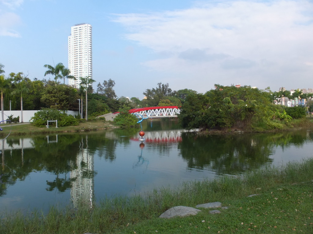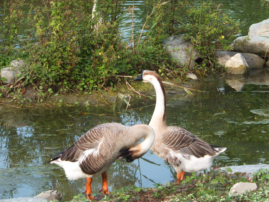園内には、木々、花、オブジェ、橋がかかった池などもあり、ゆっくり散策を楽しむことが出来ます。池の水鳥、芝生の鳩や雀が戯れているのは楽しいもので、都会のオアシスです。