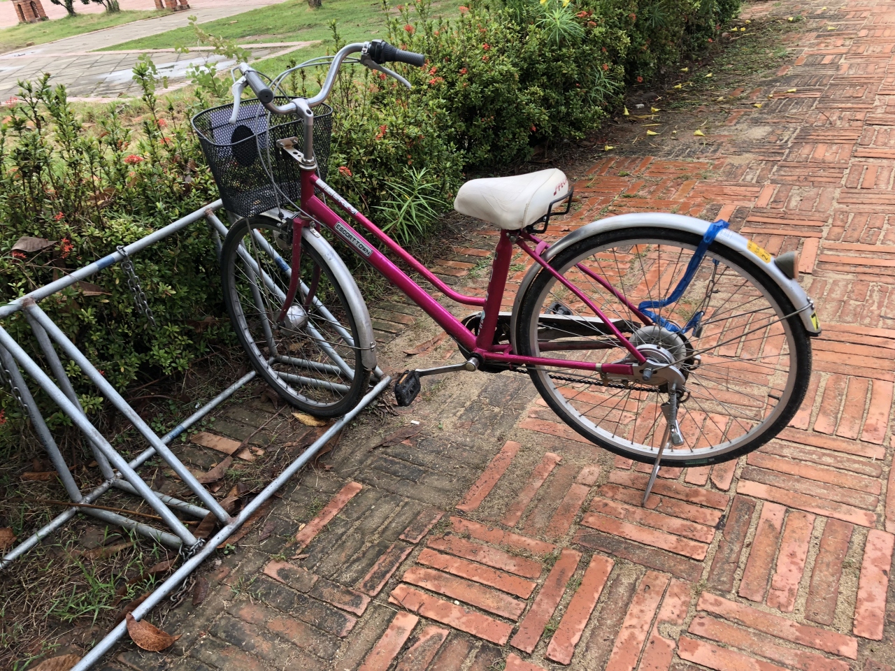 レンタサイクルということで、自転車そのものに鍵がついているわけではなく、チェーンのカギなのですが、見事に壊れている。。。笑