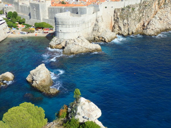 城壁がくっきり見え、青い海、城壁、赤い屋根の旧市街の街並みの絶景が。