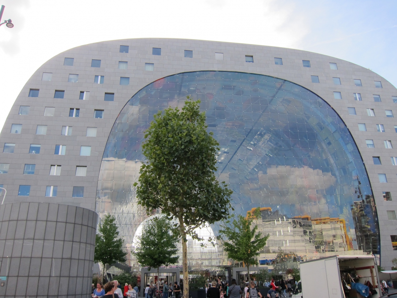 キューブハウスの隣に建つ、かまぼこ型の常設マーケットです。外側はアパートで人が住んでると言うので驚きです。中には気軽に食べれそうなレストラン、カフェ、チーズ屋さんなどがあり、見てるだけで楽しかったです。