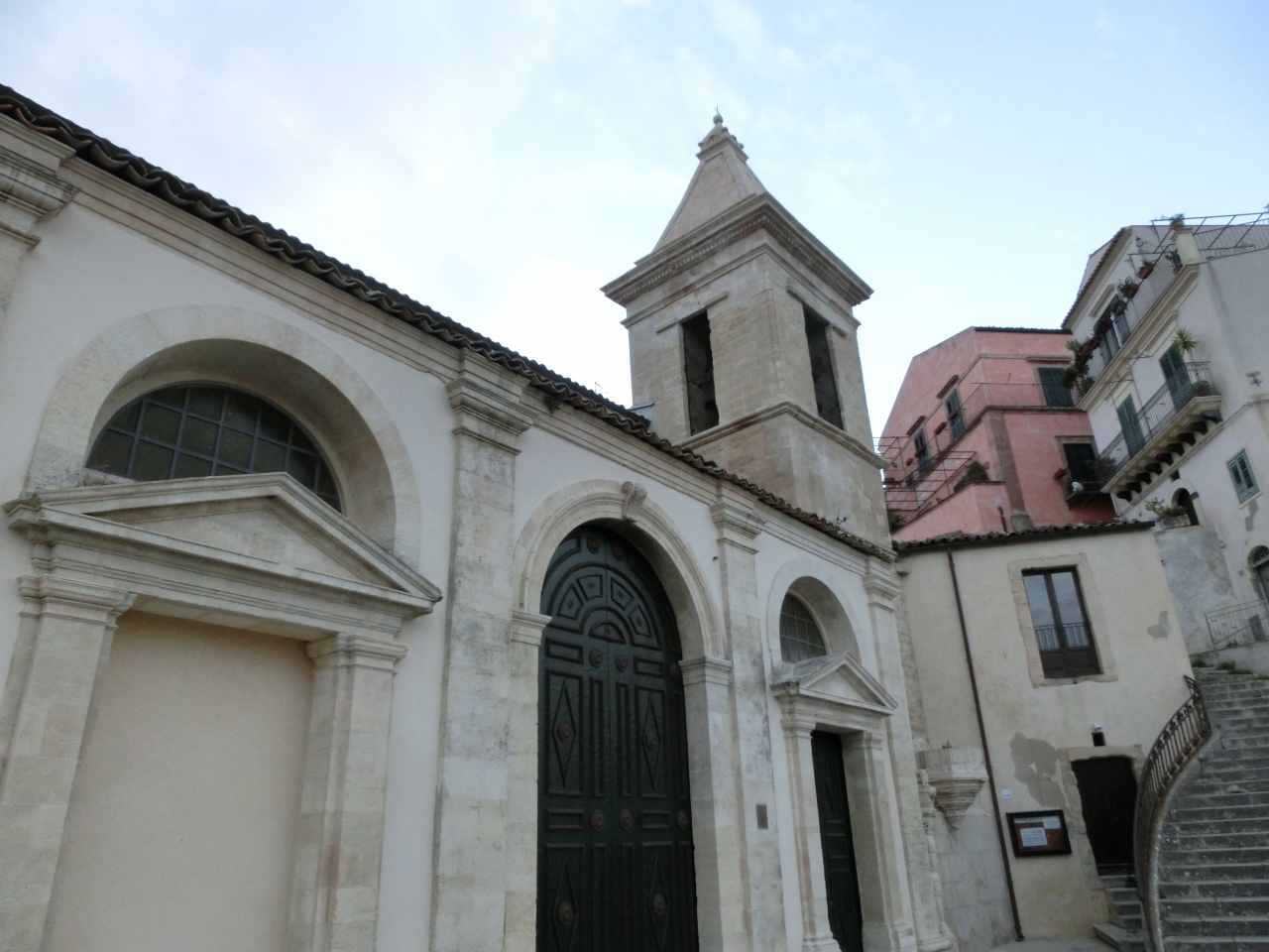 コセンティーニ館の横の階段を上がり、カルタジローネ陶器で飾られた青い鐘楼が印象的なChiesa di Santa Maria dell'Itriaから、階段の聖母マリア教会まで、がんばって階段を登り続けました。ようやくたどり着いた教会前のテラスからは、緑の中に浮かんでいるようなラグーザ旧市街のすばらしいパノラマが一望できます。ラグーザ観光ではずせない、必見スポットです。
