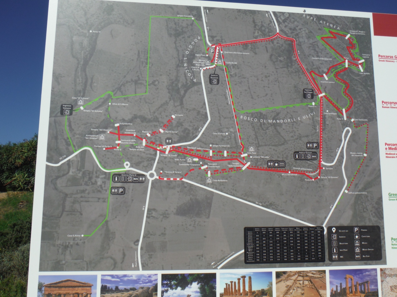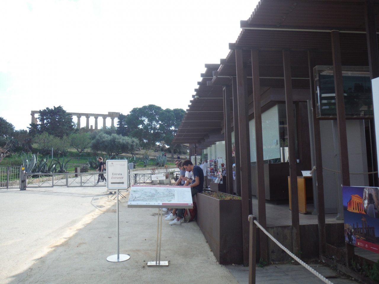 アグリジェンド中央駅から2番のバスに乗って神殿の谷に向かいました。下り坂斜め右折する手前のサンニコラ教会で間違えて降りて10分歩いて入場しました。帰りはヘラ神殿から東出口バス停でバスが出ていくのを見て中央駅方面ではなかったので見逃しましたが、その後1時間バスは来ませんでした。町に歩き始めたら次のバスが来ました。結局東出口からは中央駅方面のバスはなく、サンレオーネ海岸経由で帰るしか路線が通っていなかったようです。