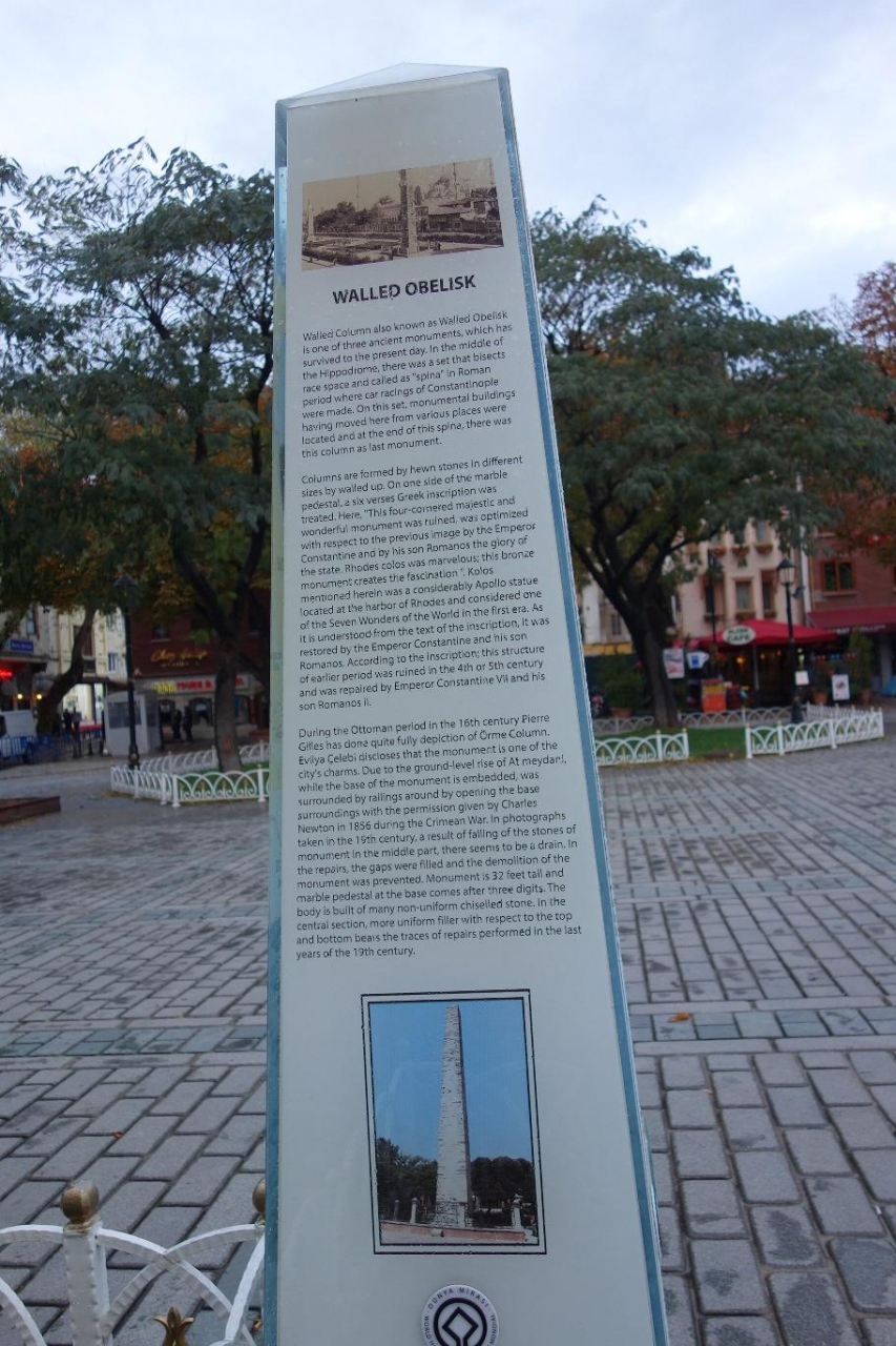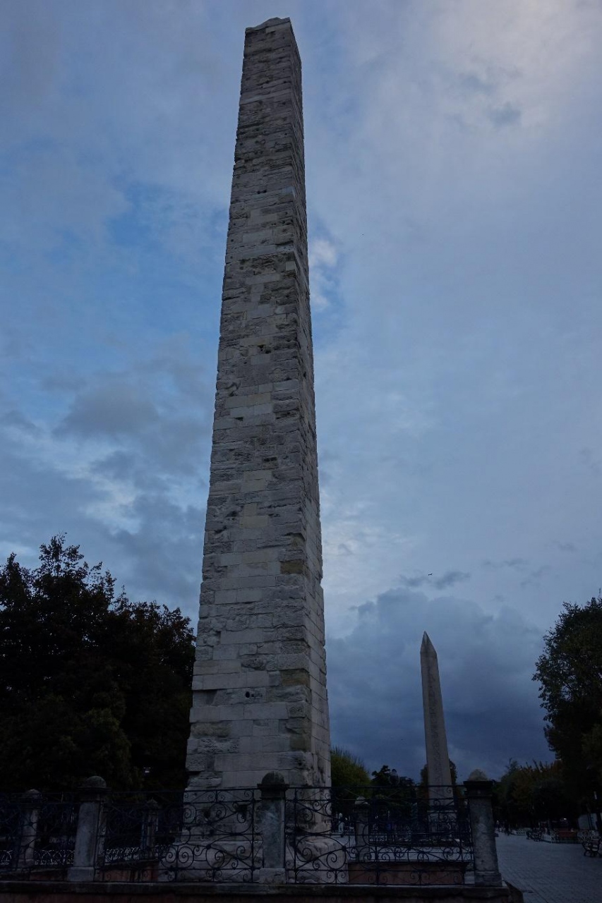 イスタンブールのスルタンアフメット広場に有るオベリスクのひとつです。背の高いモニュメントでとても目立ちました。石を積み上げた感じのオベリスクで、近くに置かれた他のオベリスクと違って、石柱に文字や柄が刻まれているようなものではありませんでした。