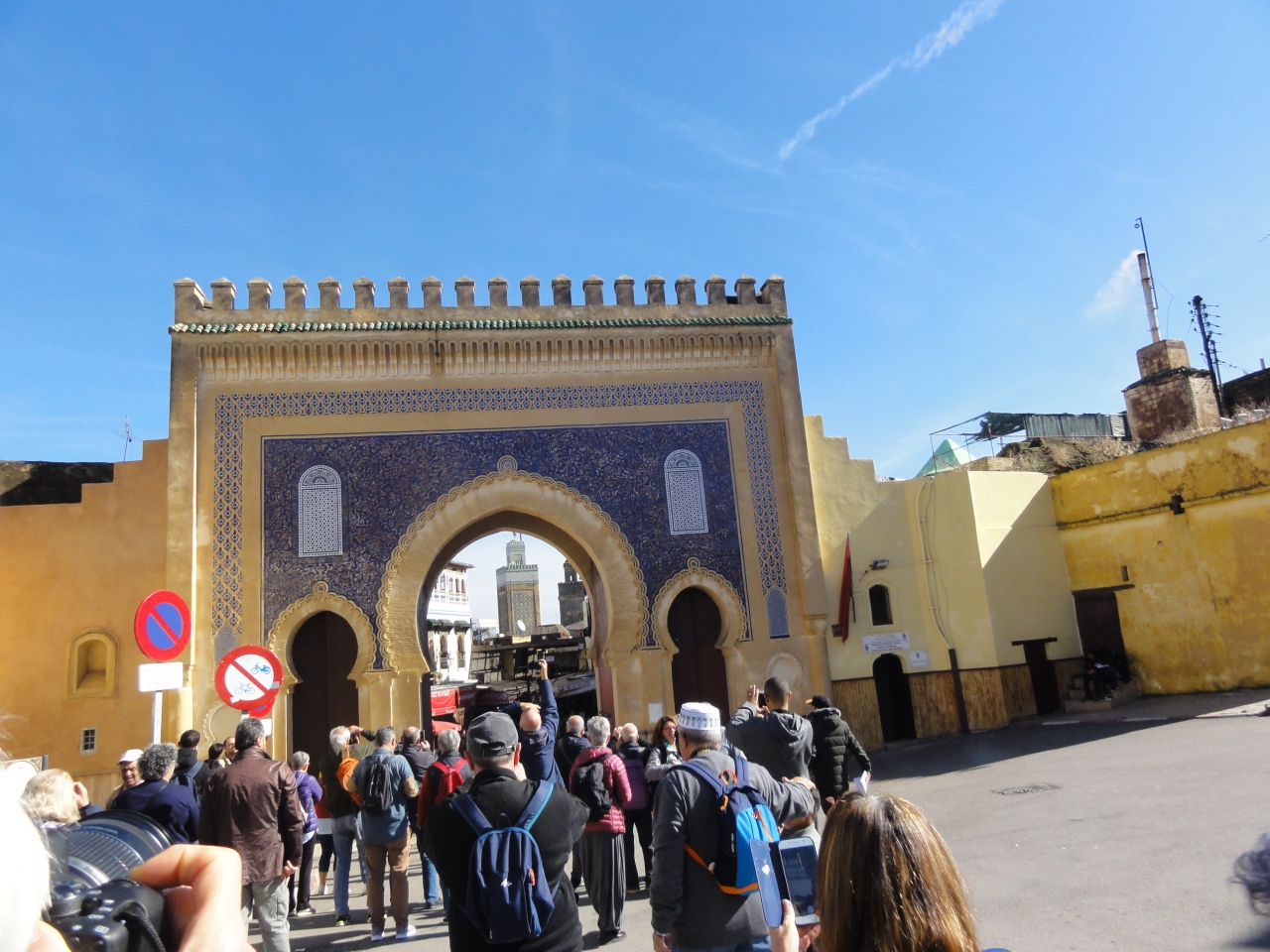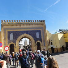 メディナの入り口にあるフェズ最大の門です。綺麗な幾何学模様に彫刻されていて表側が青、裏側が緑のタイルで装飾されてます。門の中に神学校やモスクを入れて写真を撮るのがベストのようですが混雑してて難しかったです。門の前にはサボテンの実やバナナ等の屋台も出てました。初めてサボテンの実を食べました。