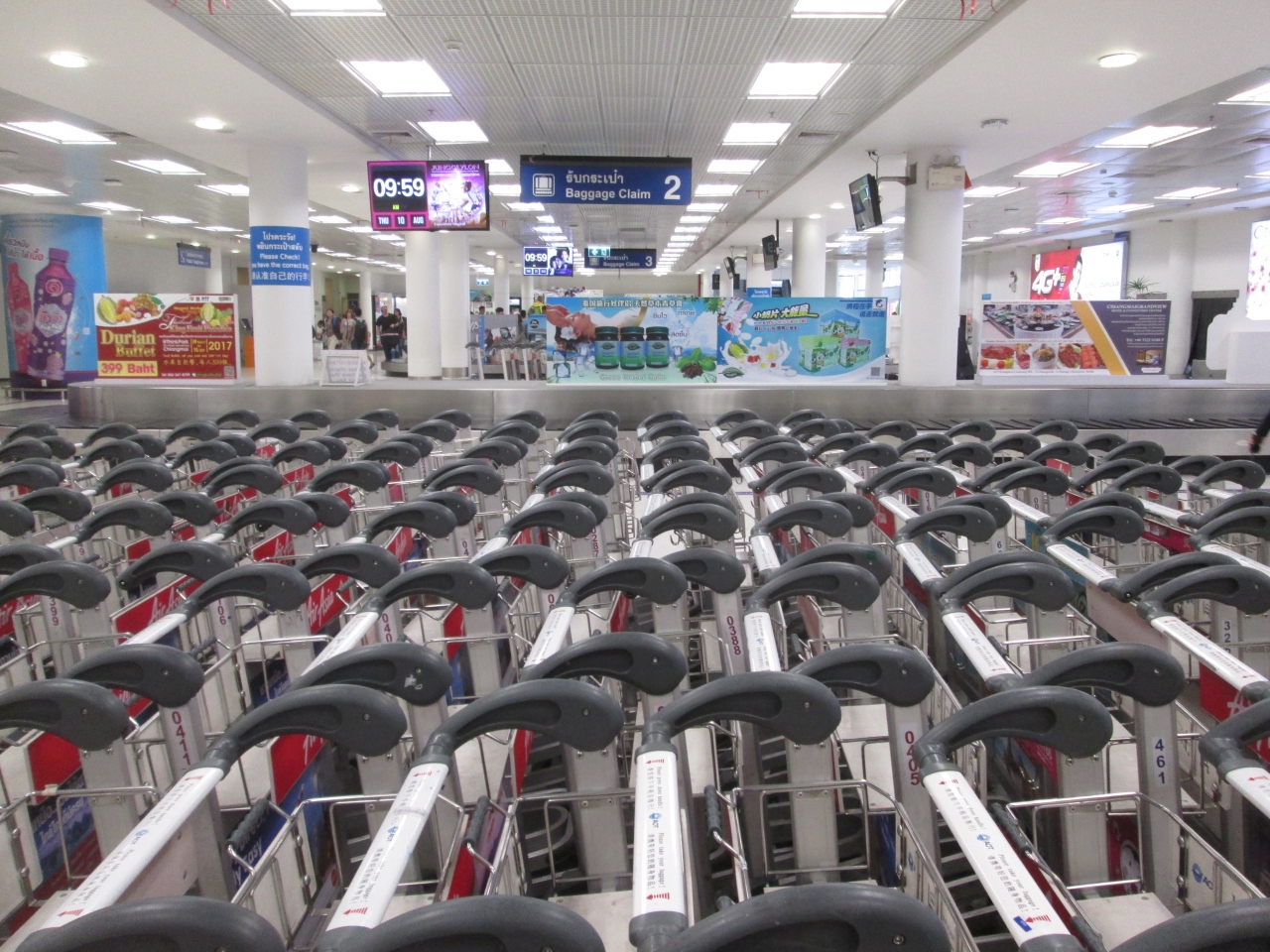 ヨーロッパの空港では荷物を運ぶキャリーカートが有料の場合がありますが、チェンマイ国際空港は無料で利用できました。日本からタイ地方の旅行では大型のかばんで来ると思いますが、カートが自由に利用できたのはありがたかったです。