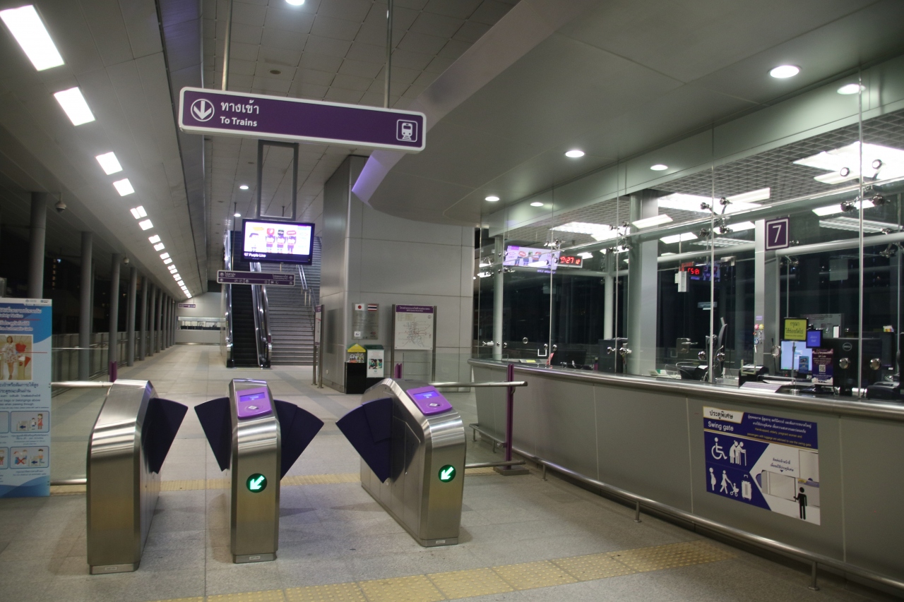 パープルラインも使う人はMRTプラスカードでないと乗り降りできないと思いきや、窓口では通常のカードを渡され、問題なく乗れました。BTSのカードと同じ180バーツで、100バーツ分運賃として使えます。