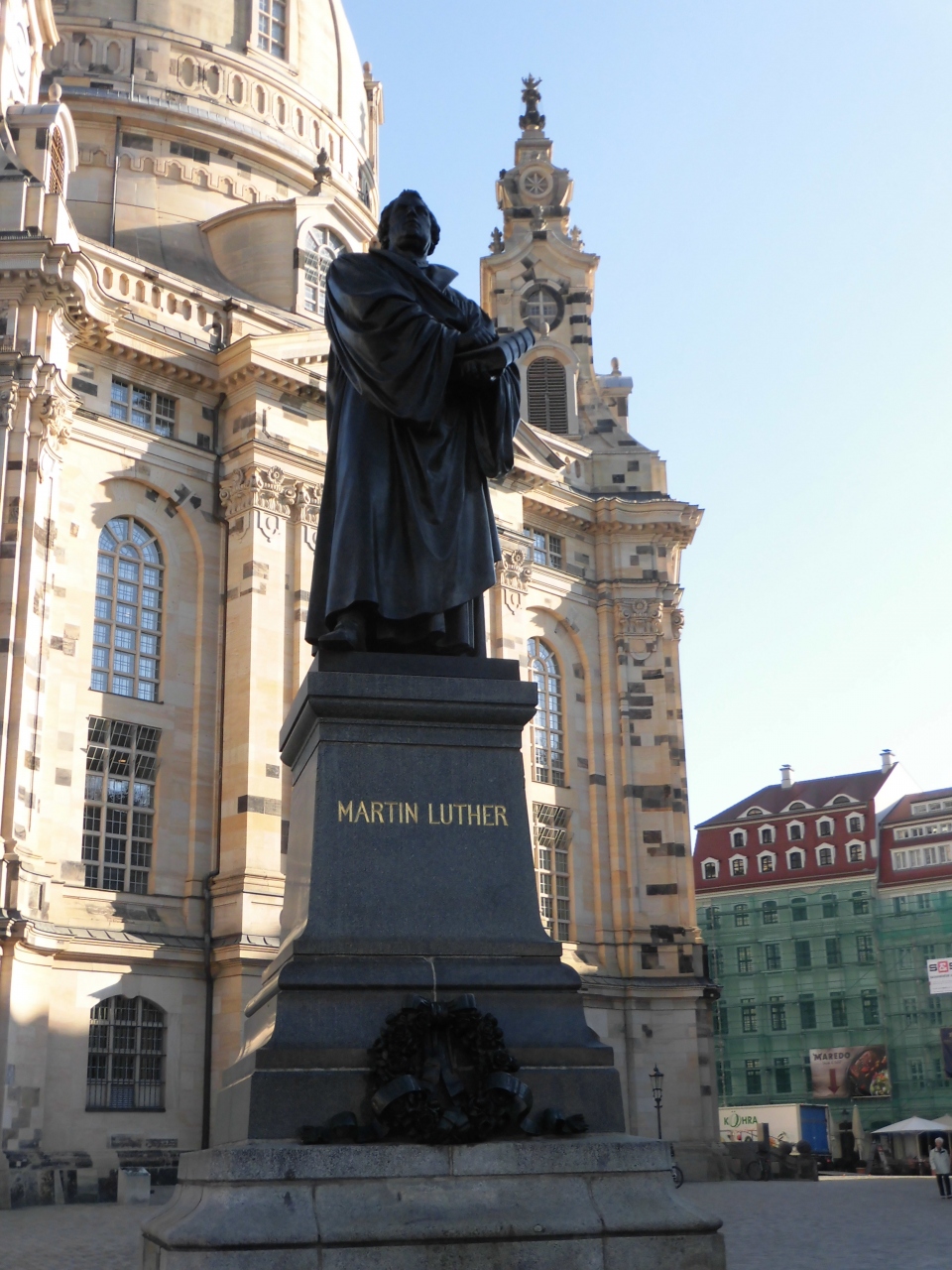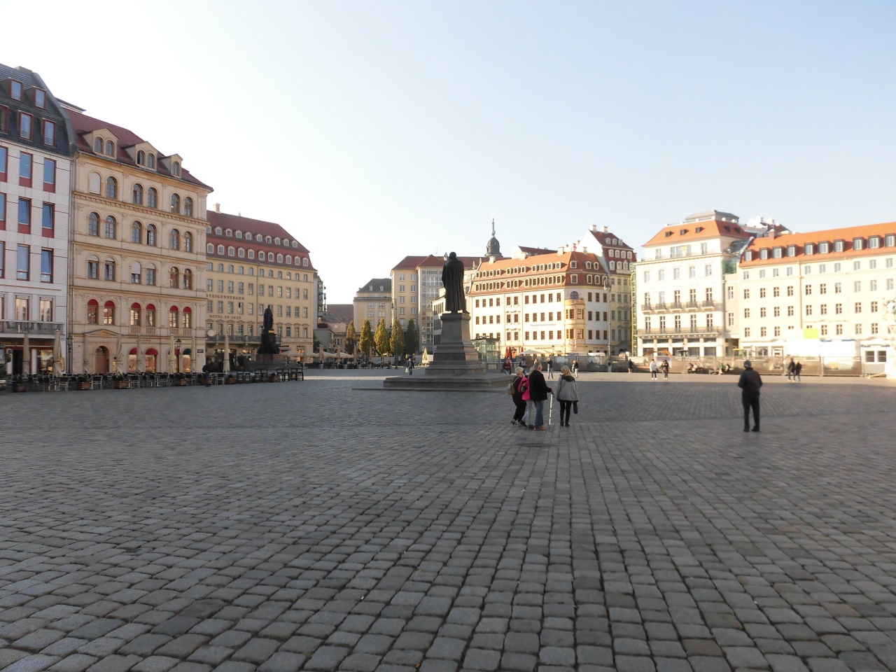 ドレスデンの旧市街、フラウエン教会前の広場です。 ショッピングモール、宮殿のような「交通博物館」もあり、「ルター像」が建っていました。