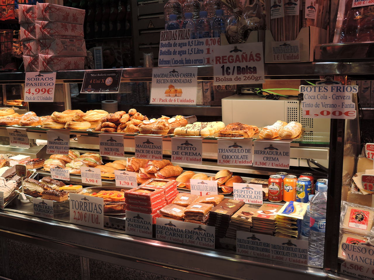 マドリードのあちこちで見かけるお店です。プラド美術館前のお店に立ち寄りました。中には美味しそうなパンやケーキが沢山。どれを買おうか迷います。買ったのはチキンパイ 1ユーロ。さっくりした皮と濃厚な中身が良く合っています。