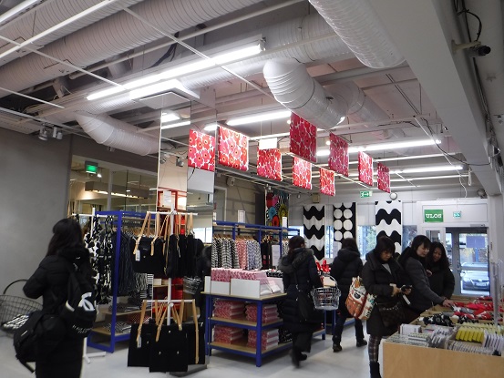日本ではマリメッコの商品はとても高くて手が出ませんでしたが、せっかくのフィンランド、この時とばかりに次から次へとアウトレット品を中心に買い物かごへ入れて行き、会計を済ませると手提げ袋二つになってしまい、その後の観光が大変でした。