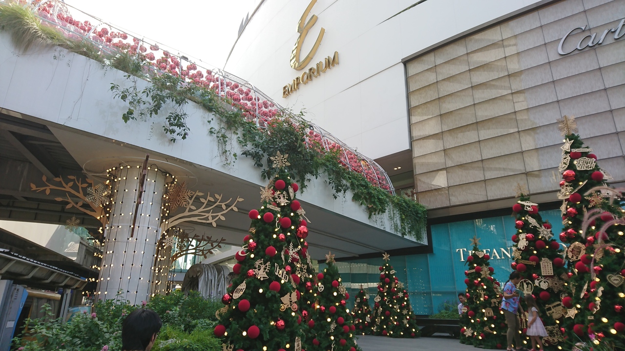 泊まったヒルトンスクンビットホテルが最寄り駅がプロンポン駅だったので直結しているエンポリウムには何度か行きました。でも駅をはさんで向こうの系列のショッピングモールの方が栄えていました。ヒルトンスクンビットホテルに行くには道が悪いのでデパートの開店中は中を通った方が便利でした。クリスマスの飾りが綺麗でした。