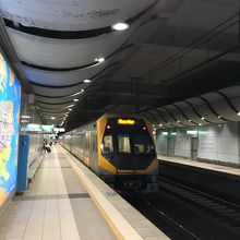 空港の地下から市内中心部までのアクセスに便利でした。電光掲示板で次の停車駅が表示されるので乗り過ごしを防止できます。車内にスーツケース置き場はなく座席間が近いので座席上に荷物を置いている人もちらほらいました。OPALカードのチャージは10$単位でした。