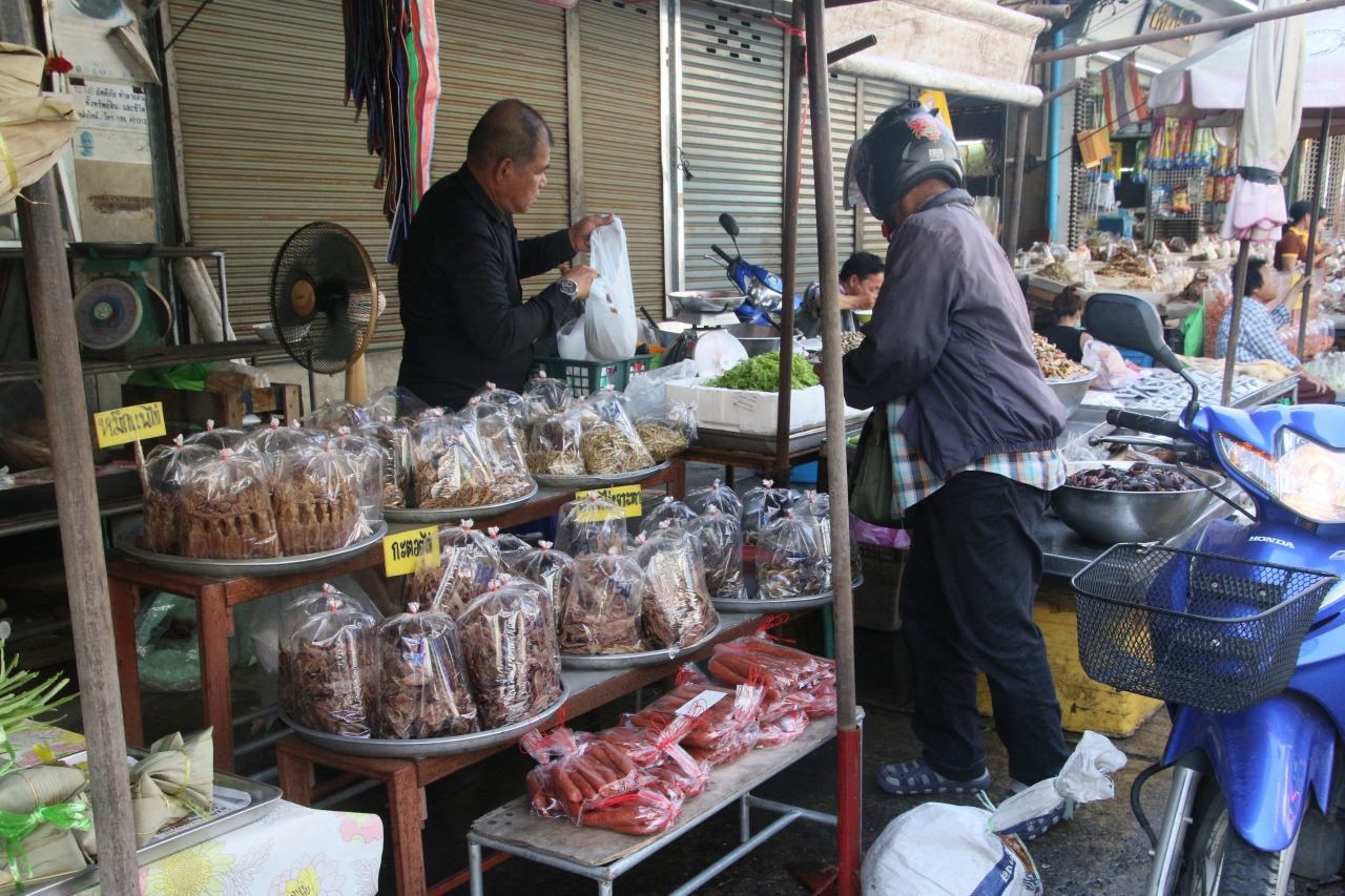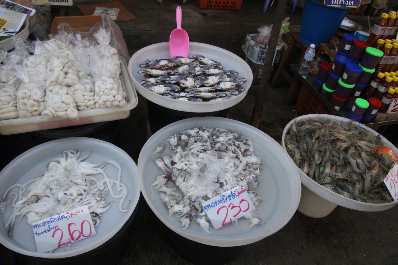 駅の「線路ギリギリまで商品を置く」お店はもちろんのこと、船着場までの道のりもお店がいろいろあって楽しいです。港町らしく生の魚が氷に乗せられて店頭に並ぶ姿は、昭和の日本に通じるものがあります。スルメ等の乾物を列車旅のお供にしても良さそうです。