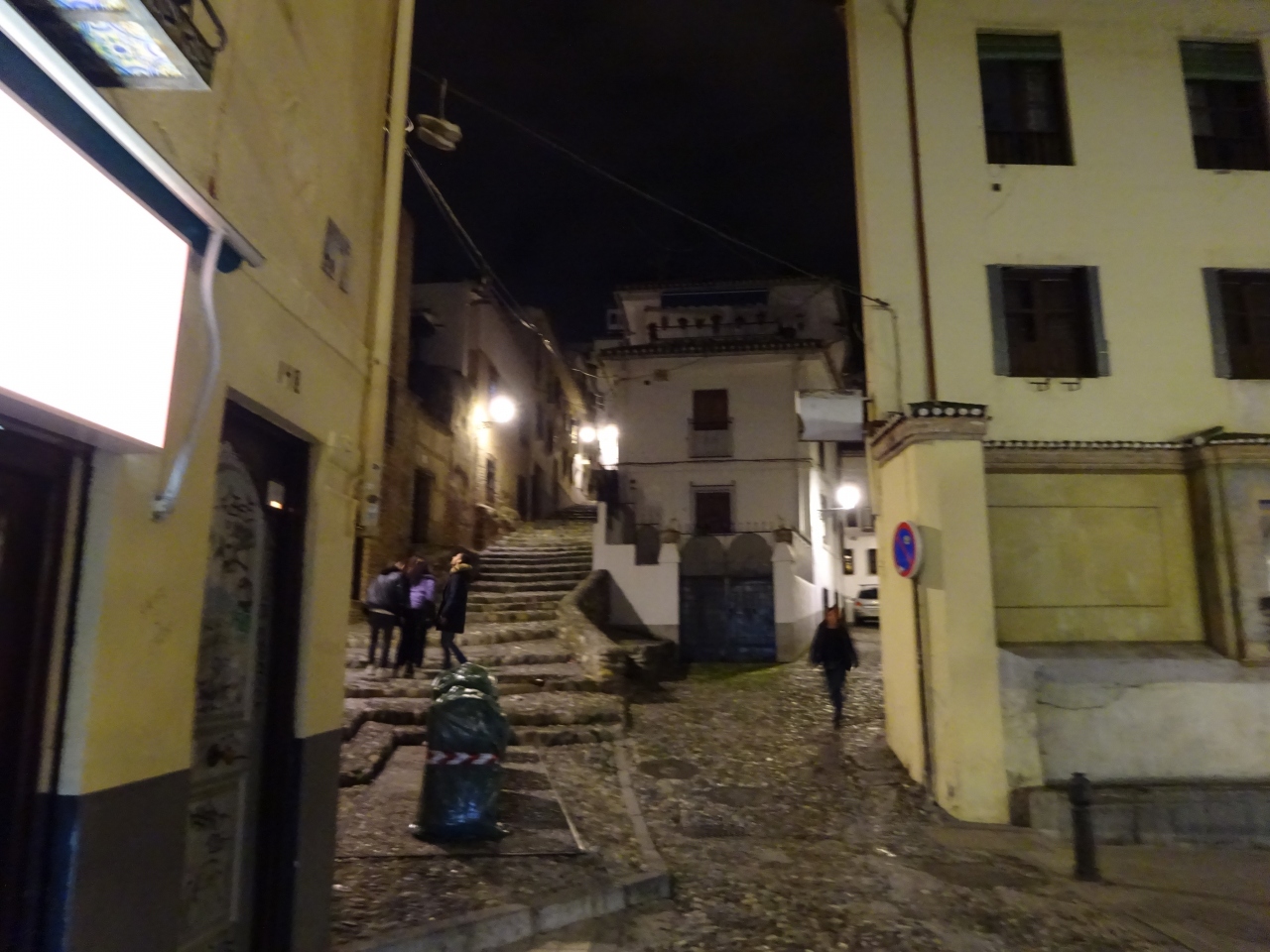 エルビラ門から出ていて、目抜き通りのグラン・ビア・デ・コロン通りの一本内側を走る、くねくねした細い通りです。食料品店やレストラン、教会などが並んでいて、アラブ風のお土産屋通り、カルデレリア・ヌエバ通りもここから出ています。