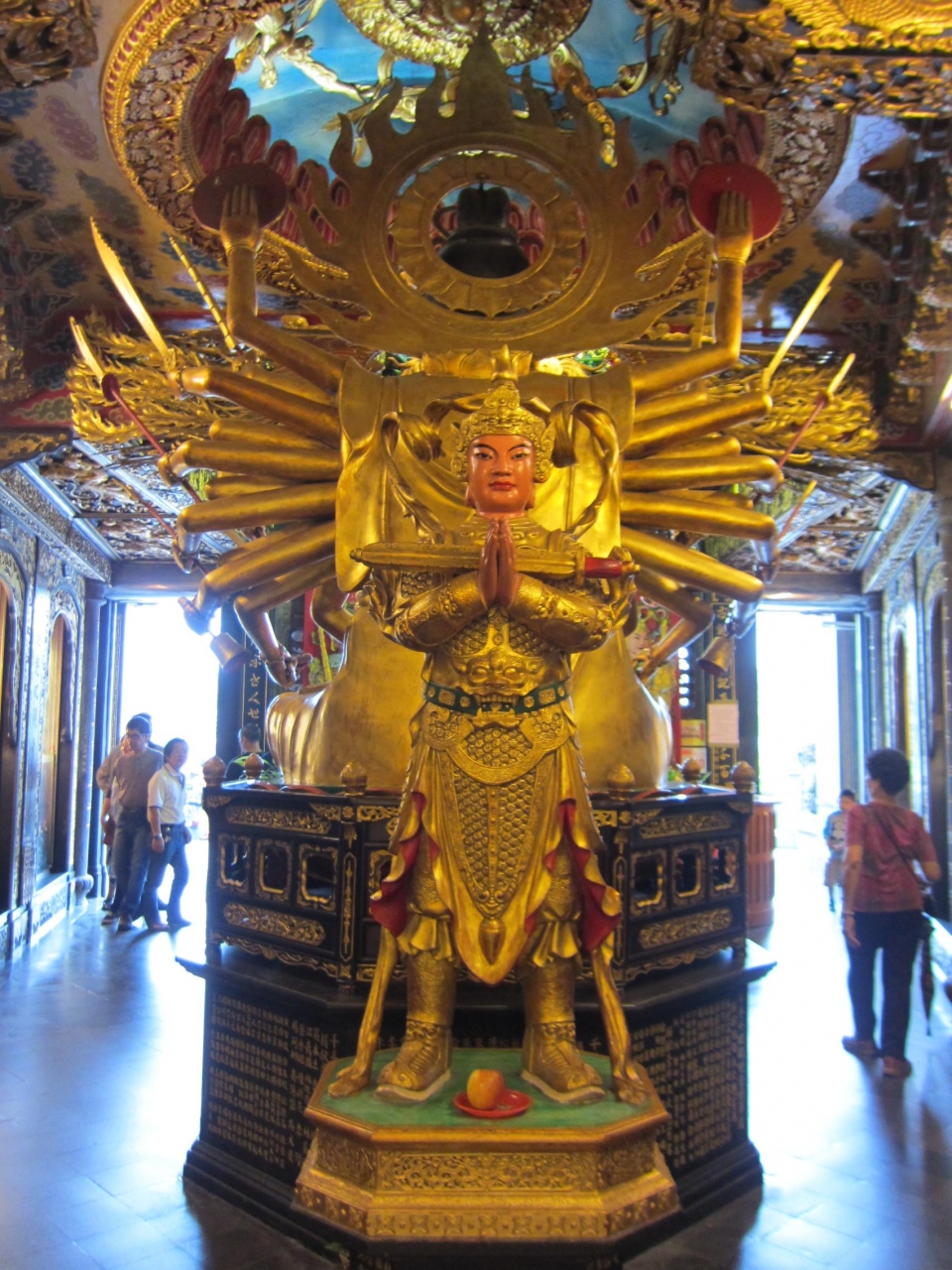 MRT関渡駅から歩いて18分ぐらいでした。看板があったので迷わずに行けました。入口には花を売っている人がいましたが、無視してそのまま入りました。台湾語の「行動導覧手冊」がありましたのでそれを参考に見学しました。裏には霊山公園があります。もちろん金運アップするようにお祈りもしました。