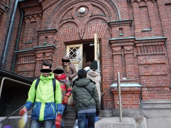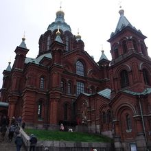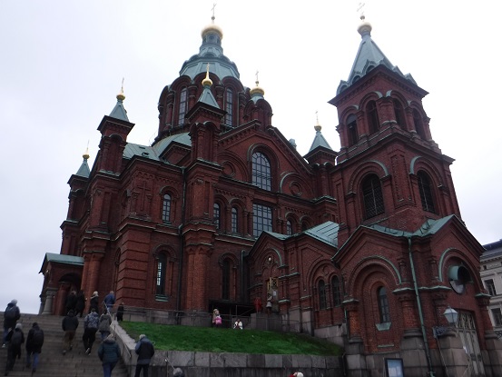 トーベヤンソン公園でトラムを下り、公園を横切って小高い丘の上に堂々とした風格のウスペンスキー寺院が建っています。ウスペンスキー寺院は、フィンランドでのロシア正教会の総本山なので、フィンランドでみる建築物の中ではとても宗教色が強い建物です。