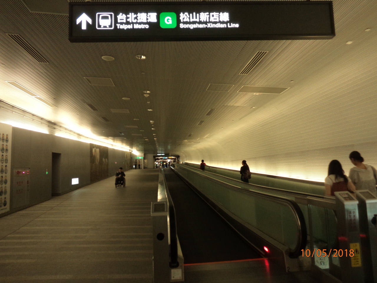 桃園メトロ(紫)で台北駅(英語ではTaipei Main Station)に到着後は、台北MRTの松山新店線(緑)を目指して歩きます。 10分くらい歩いたかも! 桃園空港からの飛行機の時間が決まってて、MRT→桃園メトロを乗り継いで空港に行く場合は、乗り継ぎに時間がかかることを計算してホテル等を出発した方が良いと思います。 私は夜遅い時間の到着なのでガラガラでしたが、これが大混雑&大きなスーツケースを引っ張って…だとかなり大変かも?!