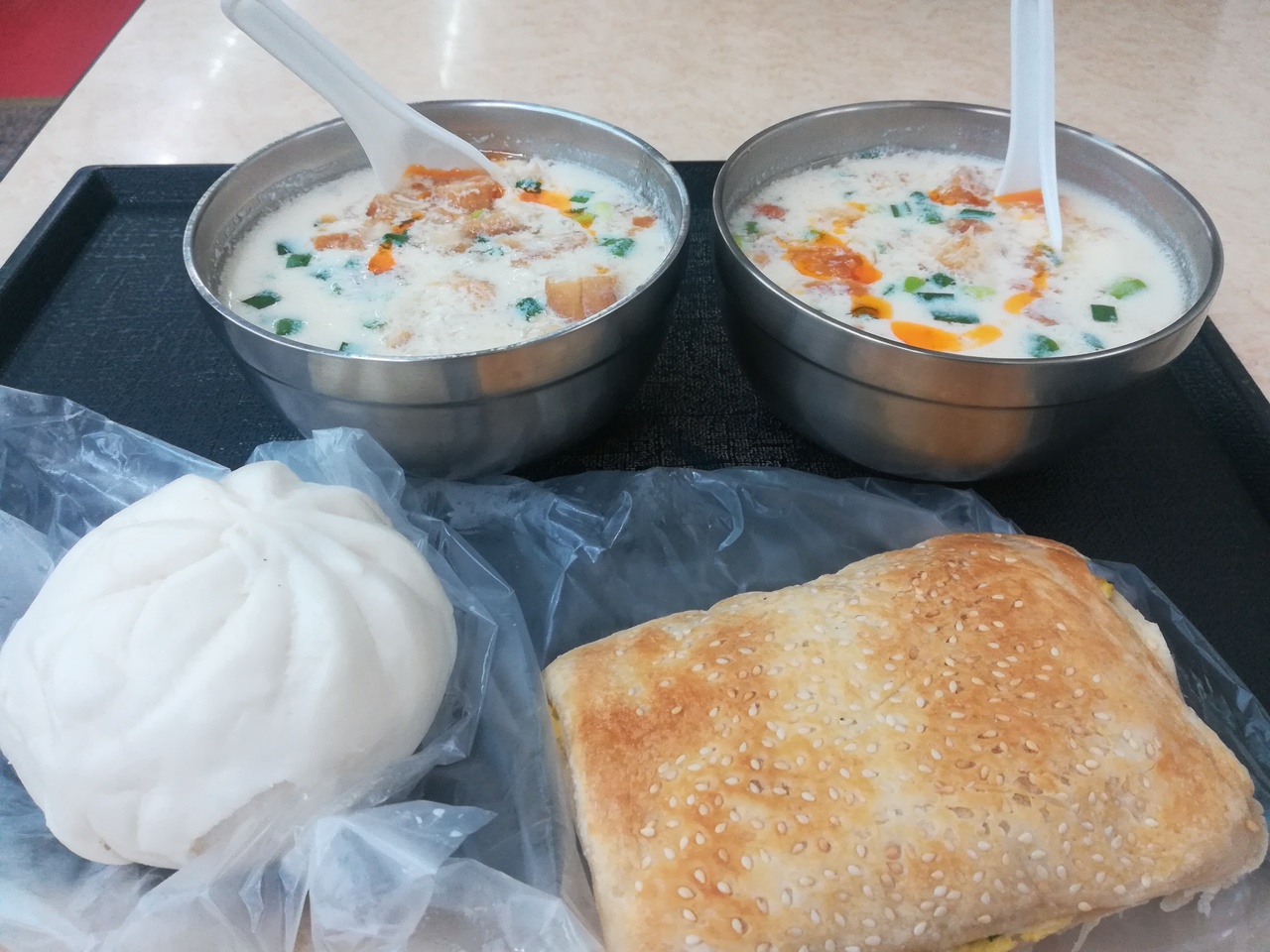 肉まんもおいしいって何かでよんだので、肉まん、あたたかい豆乳、