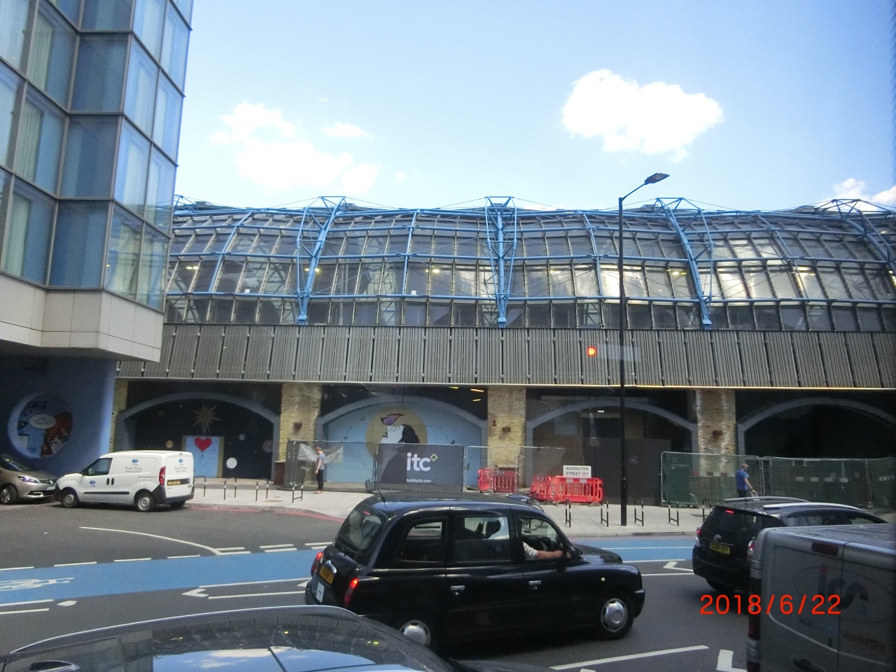 ウォータールー橋駅の反対側(テムズ川方面)にはロンドンアイの観覧車が見えた。