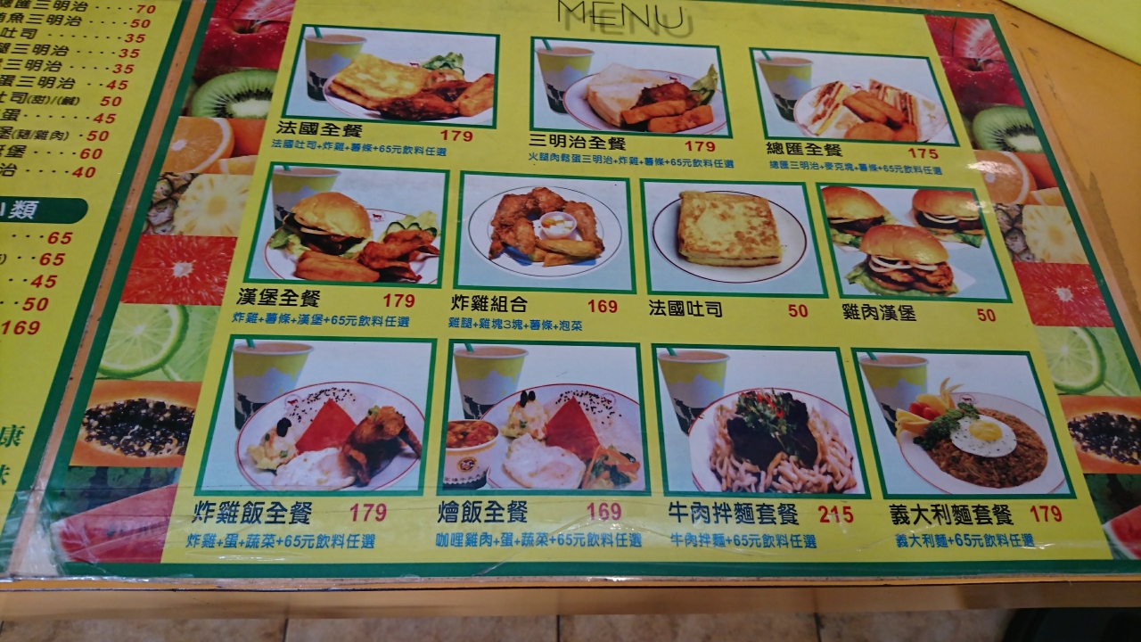 パンやごはんもの・麺などとのセットメニューが多くありましたが、ホテルの朝食を食べた後だったので、パパイヤミルク65元だけを注文。